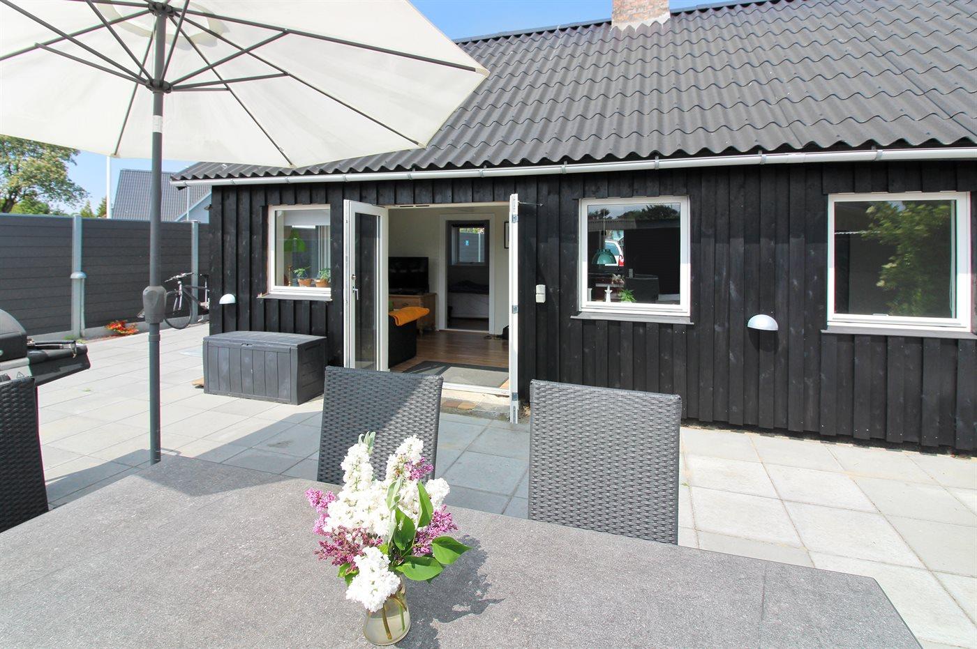 I denne lille idylliske tidligere landejendom er der indrettet en pæn og moderne ferielejlighed i én af de mindre bygninger. Der er adgang til stor lukket terrasse, som i ferietiden kan benyttes til grill, solbadning eller bare familiehygge. På grunden er det muligt at leje 3 yderligere ferielejligheder (95-2556, 95-2558 og 95-2564).