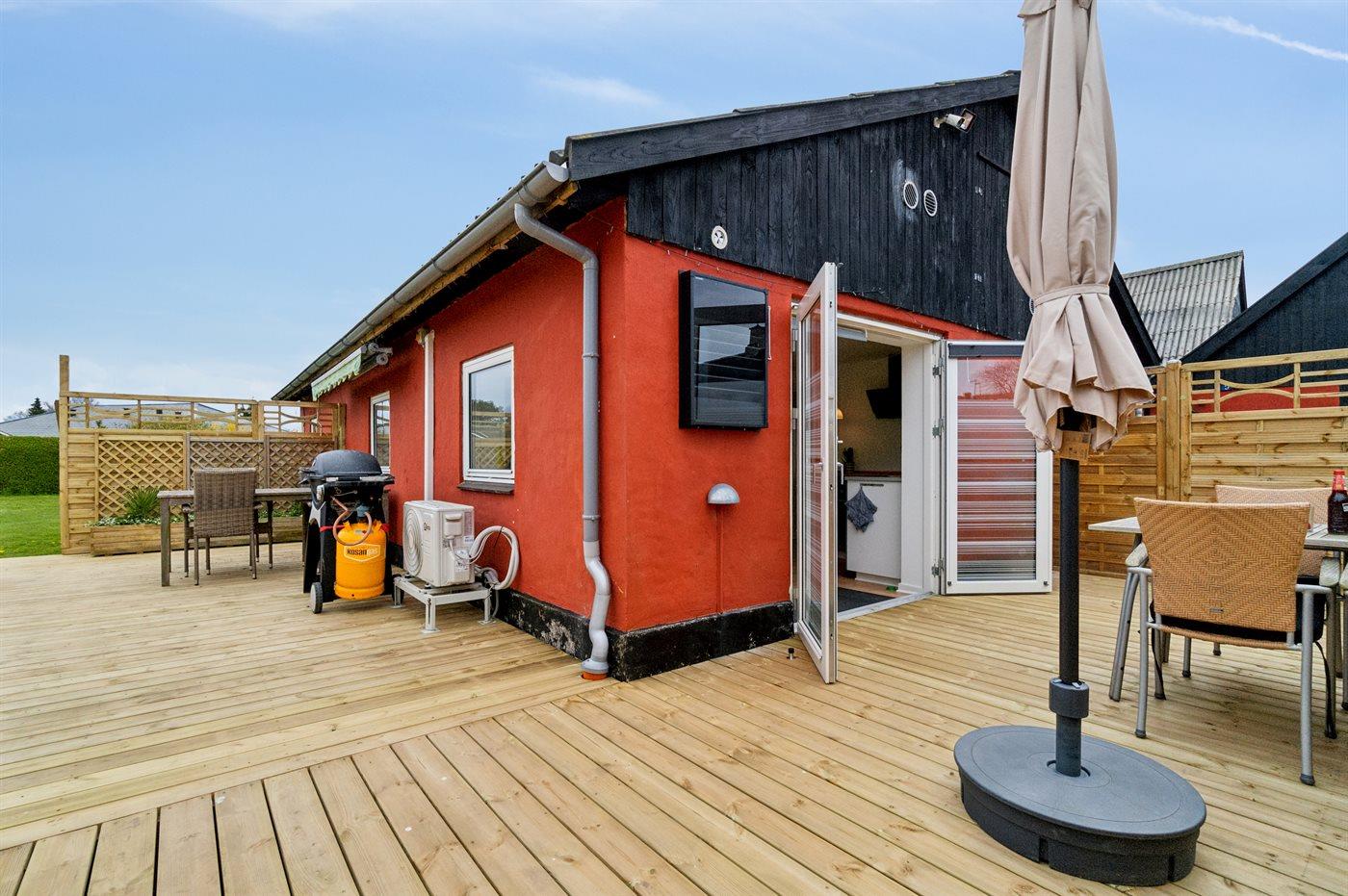 I den lille tidligere landbrugsejendom er der i "Værkstedet" indrettet en lys og pæn ferielejlighed med tilhørende egen indhegnet terrasse og plæne. Adgang til fælles gårdsplads.
