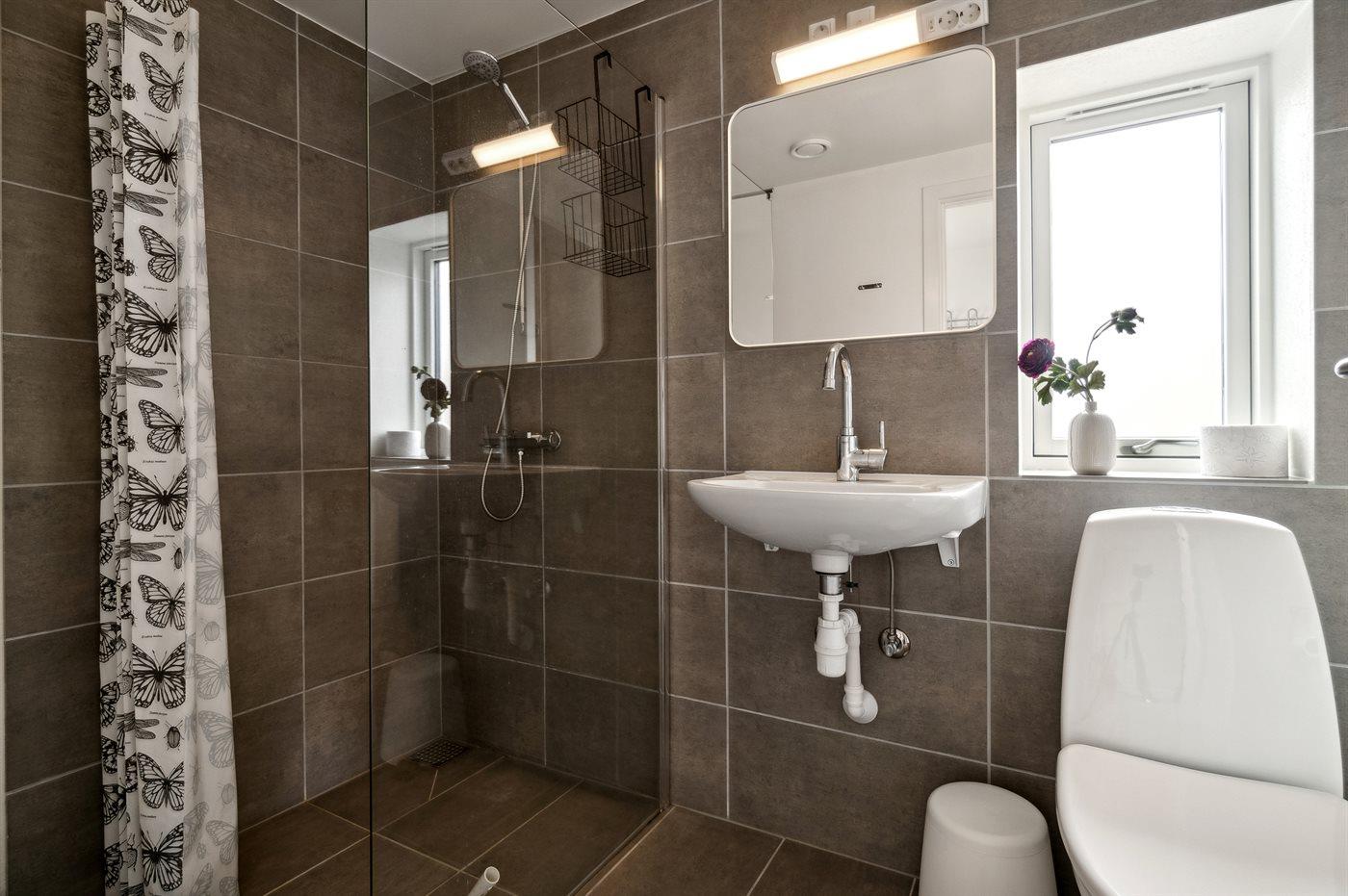 Der er 1 badeværelse med bruseniche og 1 toilet.