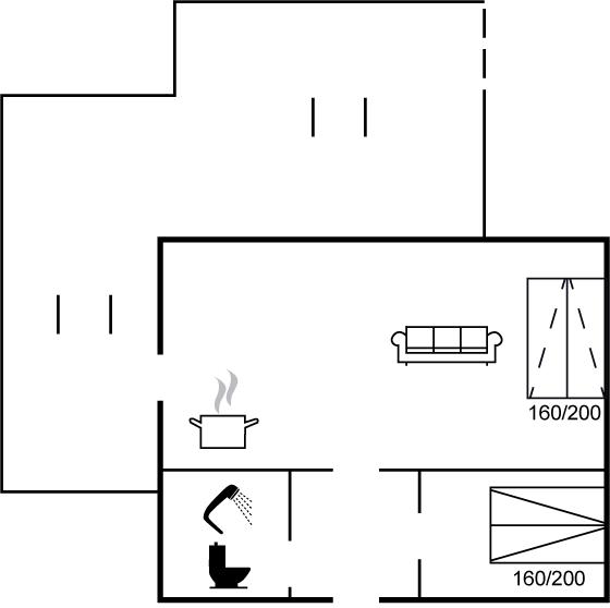 Der er i alt 1 soveværelse. Sovepladserne fordeler sig på: 2 sovepladser i dobbeltseng. 2 sovepladser i sovesofa (dobbelt).