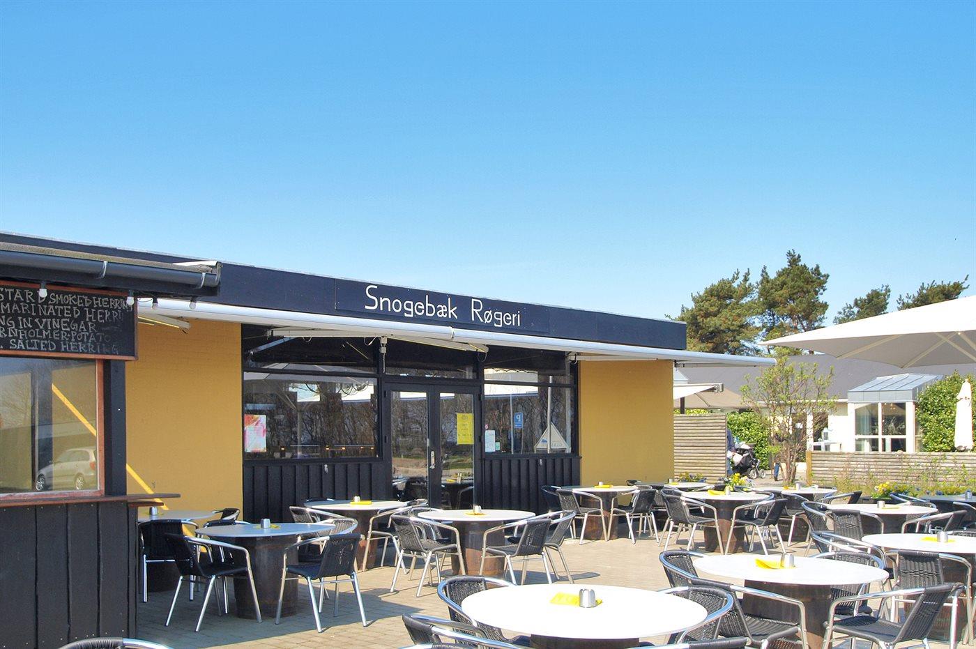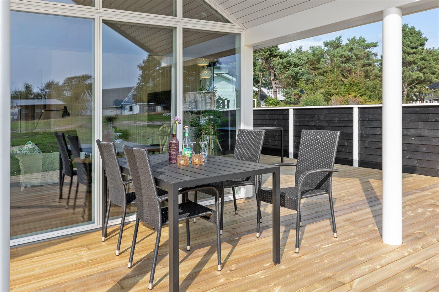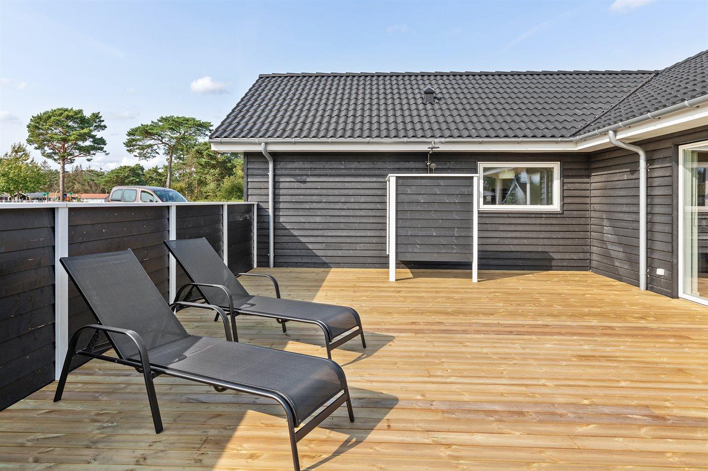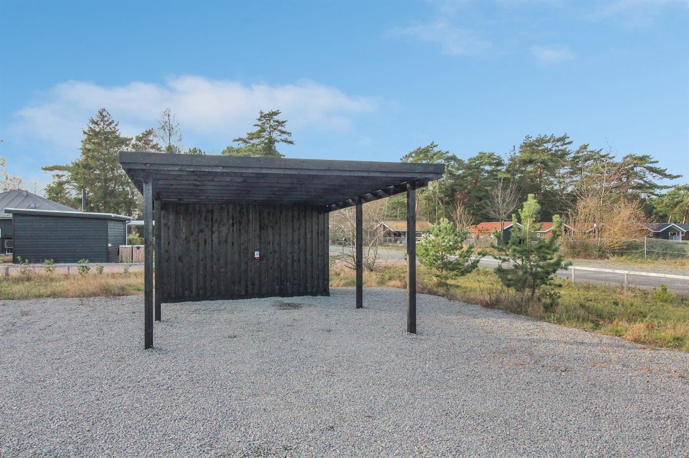 Ferieboligen er beliggende på en 1200 m² stor naturgrund. Der er 260 m til havet. Nærmeste forretning er beliggende i en afstand af 1000 m. Der er en golfbane i en afstand af 7000 m. Til ferieboligen hører 80 m² terrasseareal. Desuden er der 15 m² overdækket terrasse. Udendørs bruser. Grill til rådighed. Der er carport til rådighed. Der er installeret stik til opladning af elbil. Parkering ved ferieboligen.