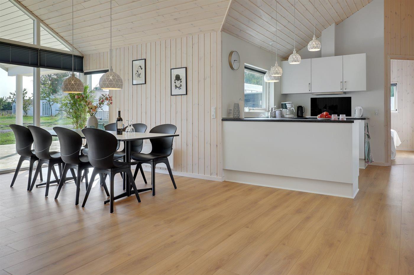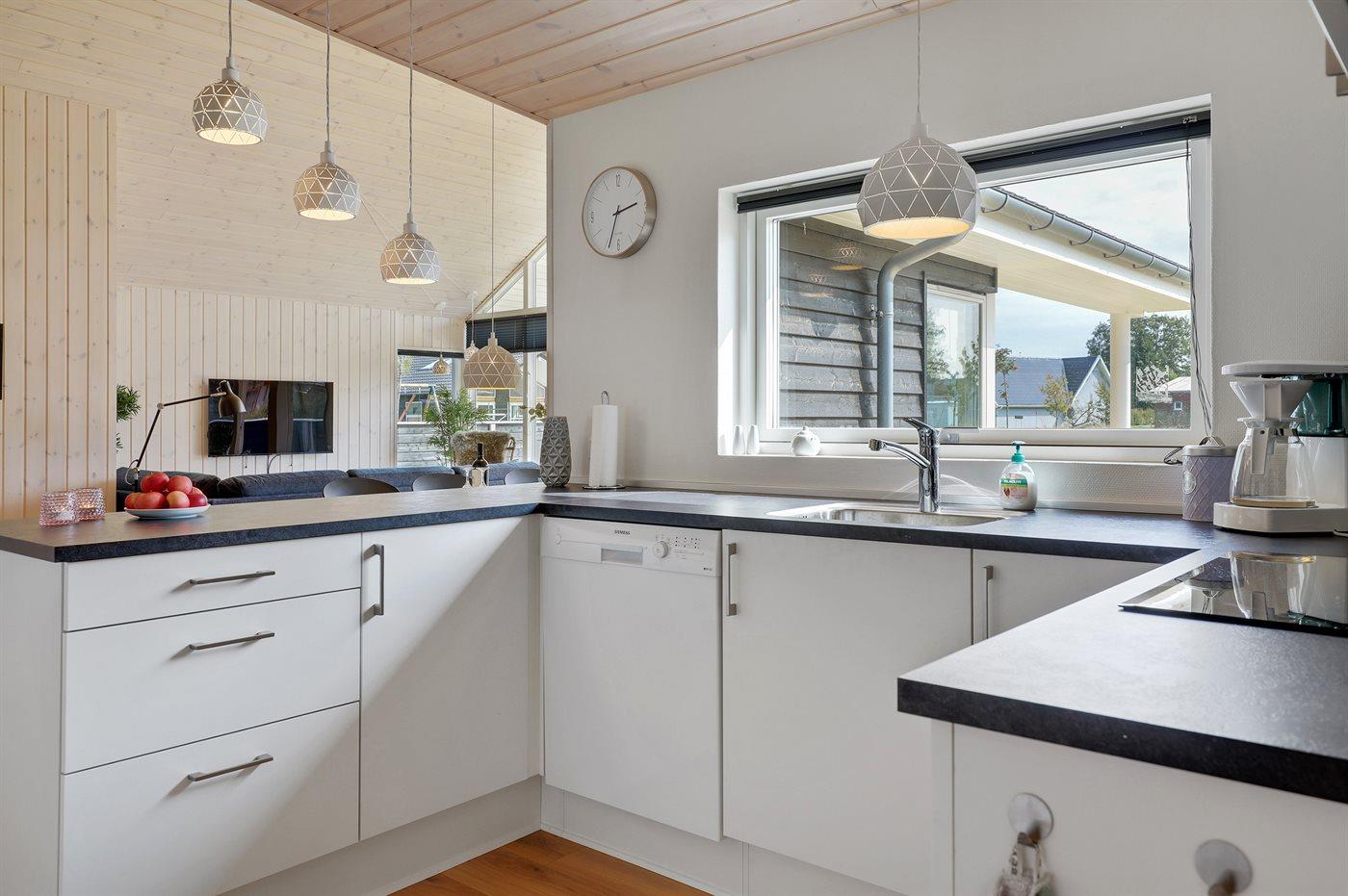 Køkkenet er udstyret med 1 køleskab. Der er 4 induktionskogeplader, varmluftovn, mikrobølgeovn samt opvaskemaskine.