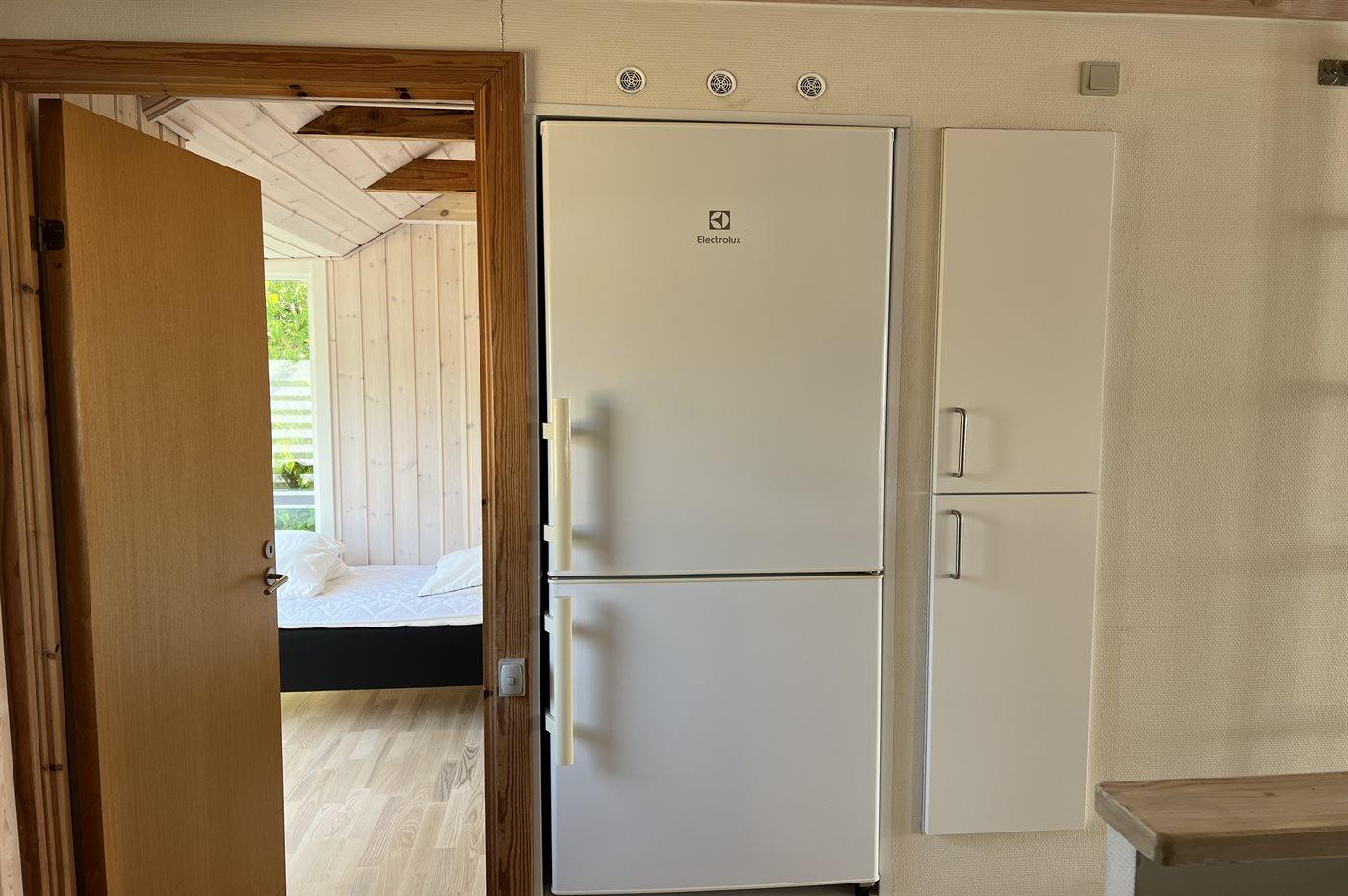 Køkkenet er udstyret med 1 køleskab. Der er 4 induktionskogeplader, varmluftovn, mikrobølgeovn samt opvaskemaskine.