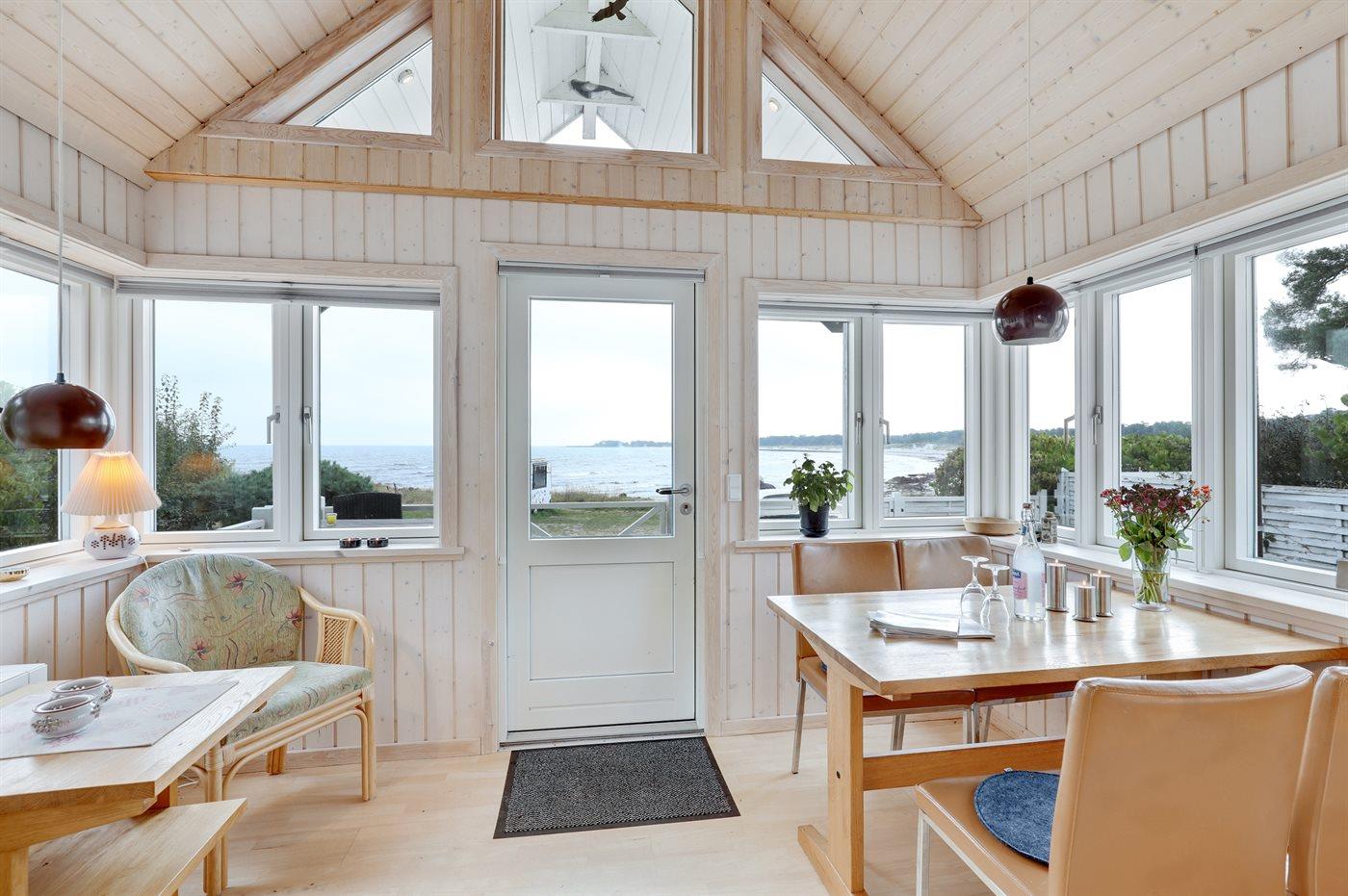 Med direkte udsigt over Balka-bugten og den fine, børnevenlige sandstrand ligger dette velholdte sommerhus i træ. Huset fremtræder lyst og venligt. Bag huset ligger en ugenert have med mulighed for at nyde solen, hygge og leg.