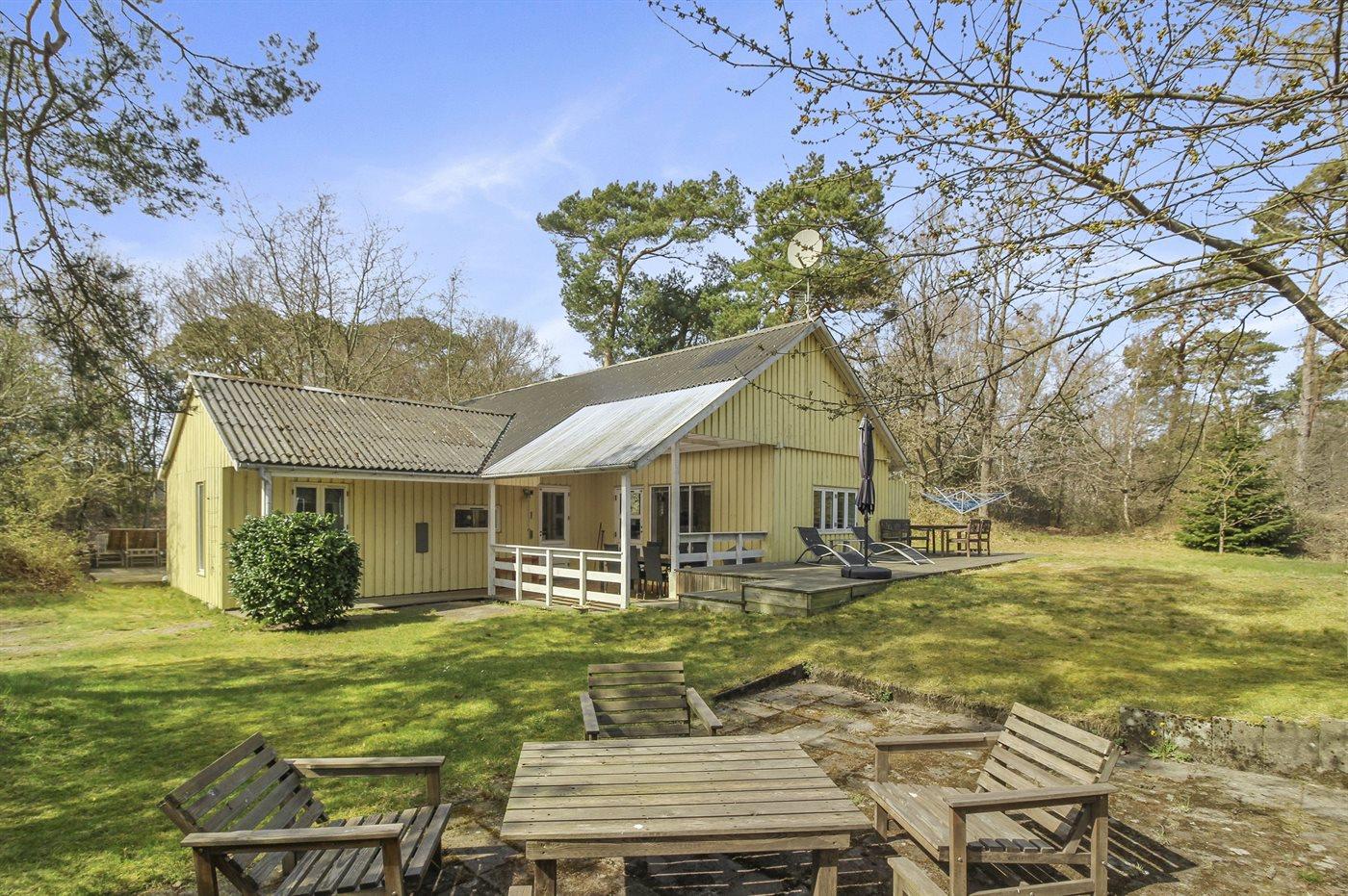 Rummeligt sommerhus beliggende på ugeneret grund omkranset af bevoksning nær børnevenlig og populær sandstrand.