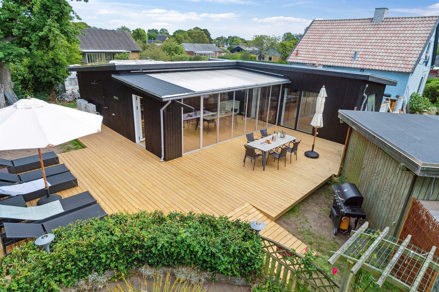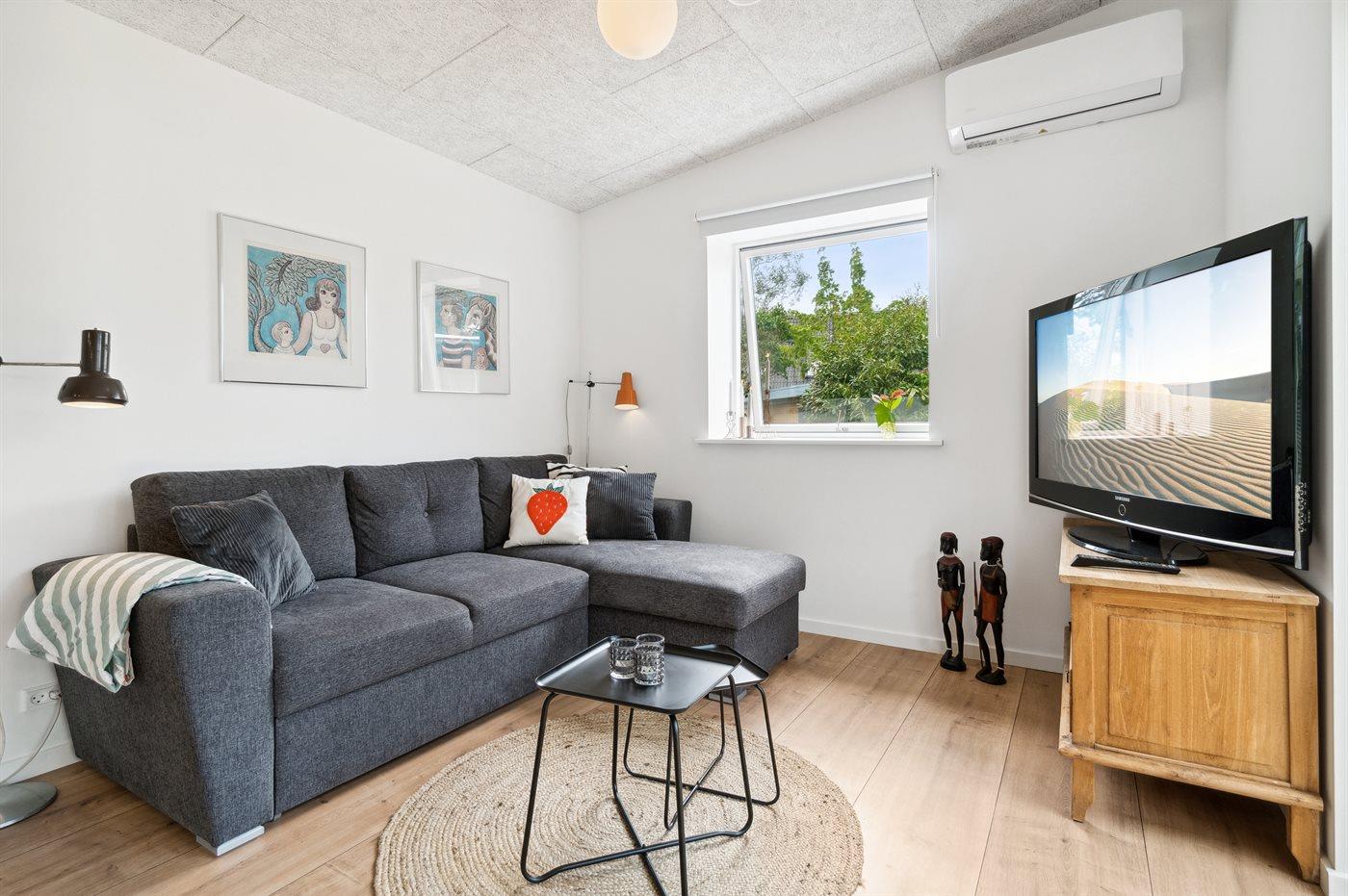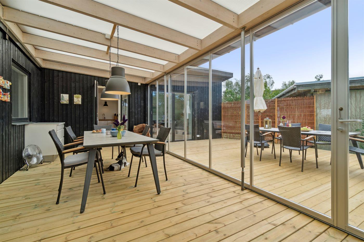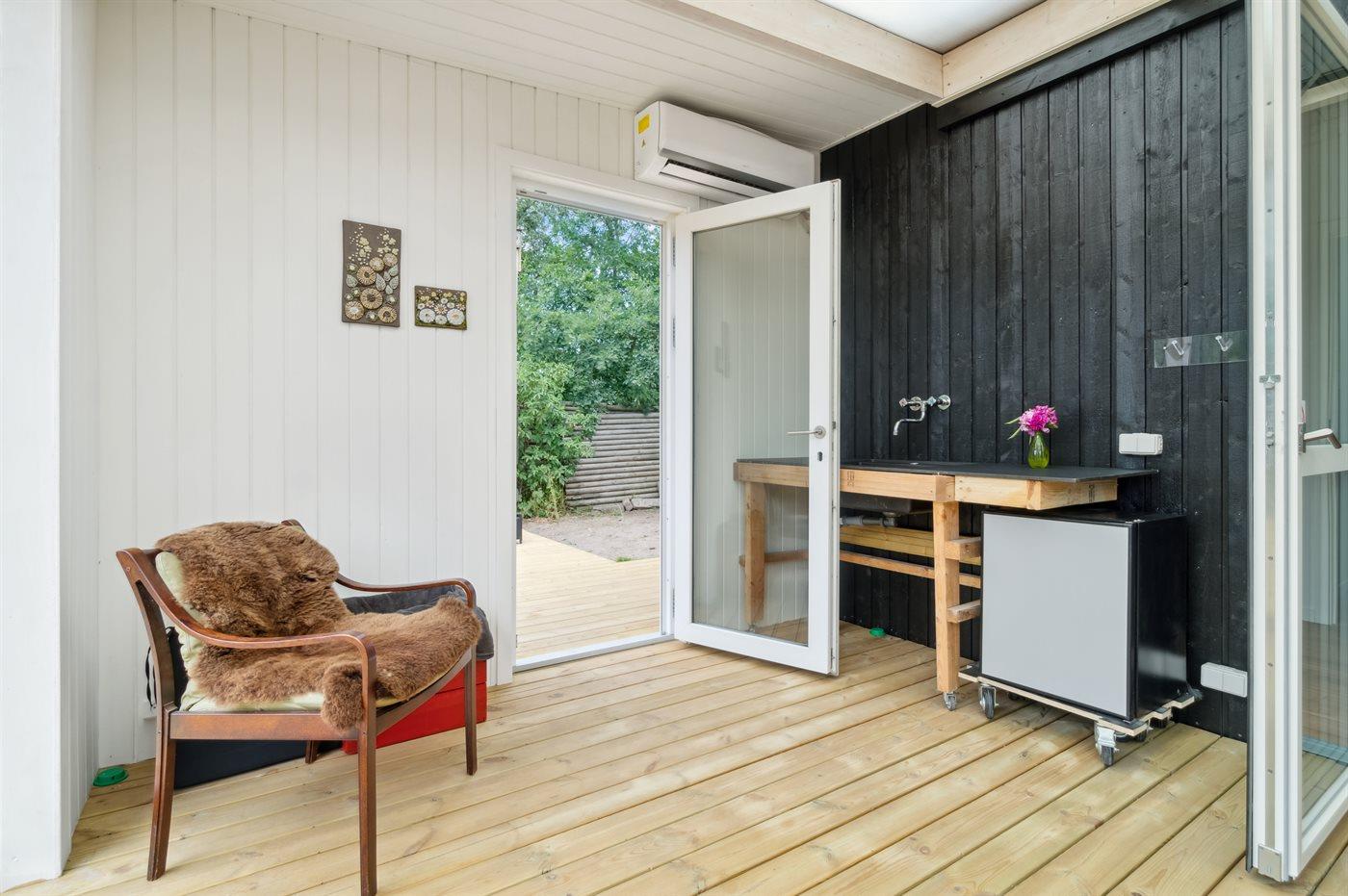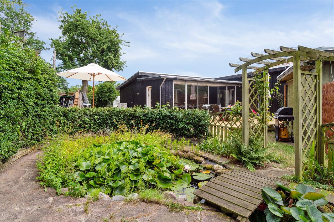 Moderne og hyggeligt sommerhus nær Balka Strand med udestue og indhegnet naturgrund.