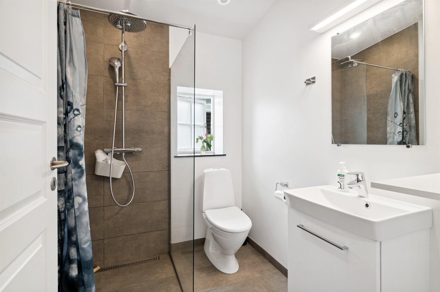 Der er 1 badeværelse med bruseniche og 1 toilet.. Der er gulvvarme på 1 badeværelse.