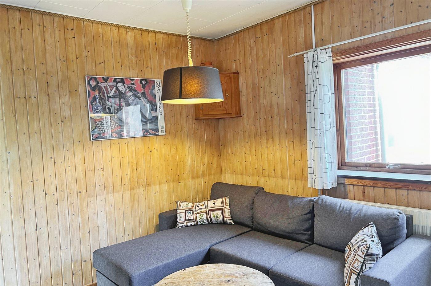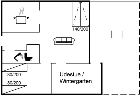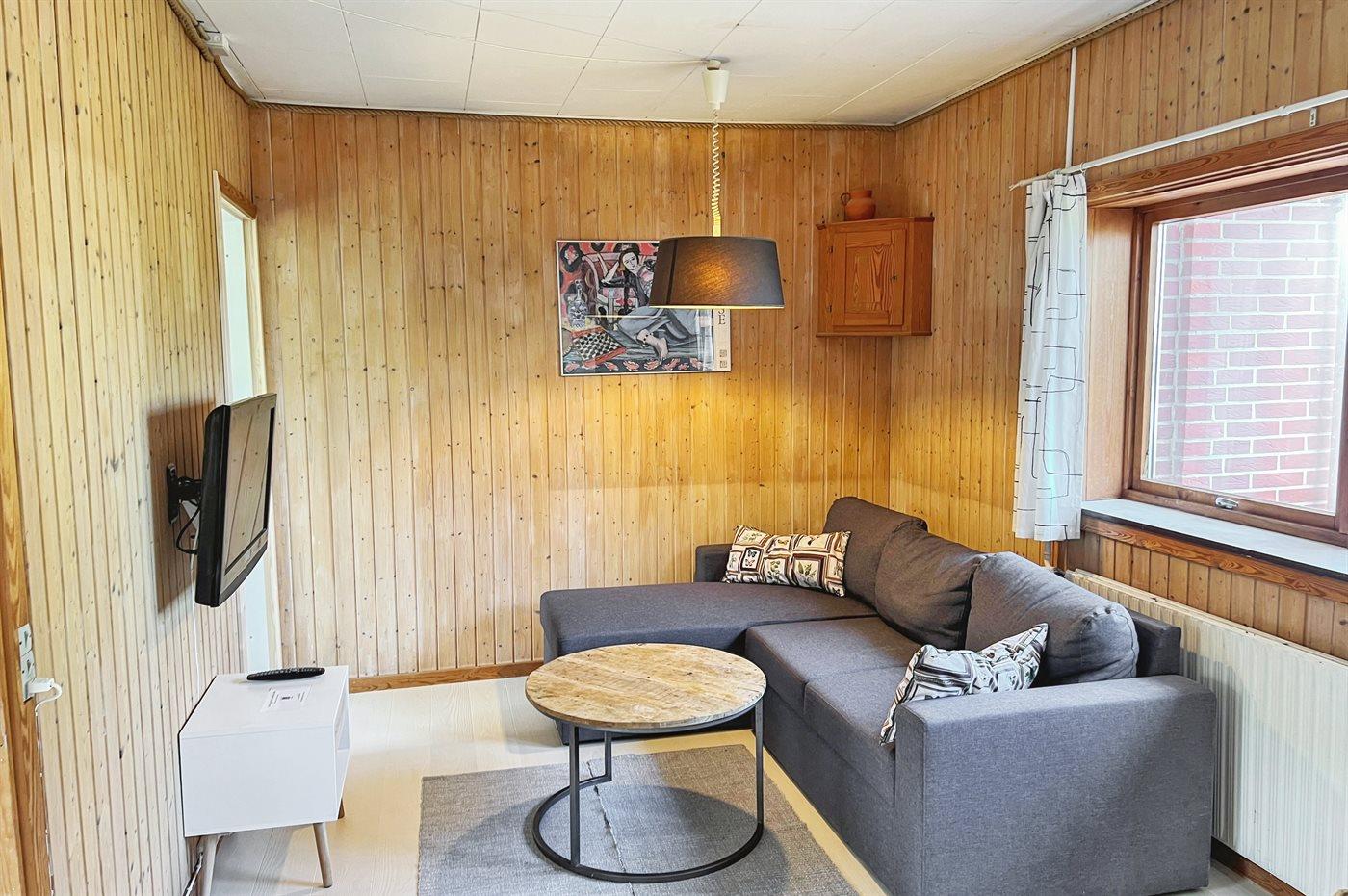 I denne ferielejlighed er der i 2024 lagt nyt flot gulv i lyst træ. Der er desuden et nyt, pænt og praktisk køkken, og badeværelset er renoveret. Udestuen er bl.a. møbleret med en sovesofa, og rummet kan lukkes af og benyttes som soveværelse.