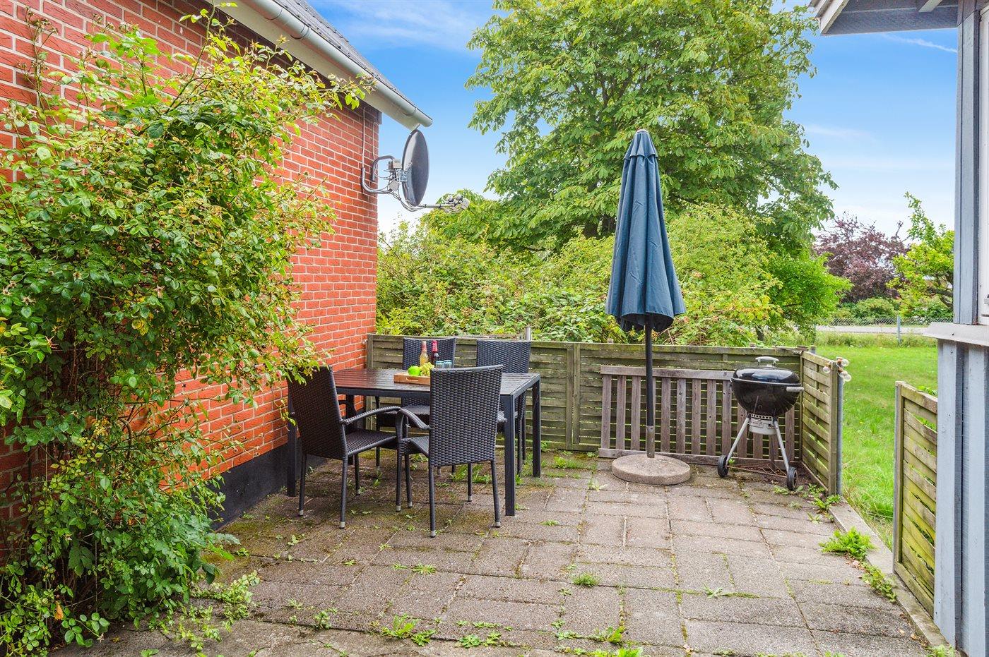 Lejligheden er én af flere lejligheder i samme bygning som udlejes og p-plads samt græsplæne er dermed fælles. Der findes dog egen, afskærmet terrasse med grill.
