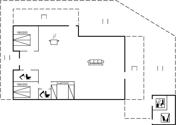 Der er i alt 3 soveværelser. Sovepladserne fordeler sig på: 4 sovepladser i dobbeltsenge. 2 sovepladser i enkeltsenge.