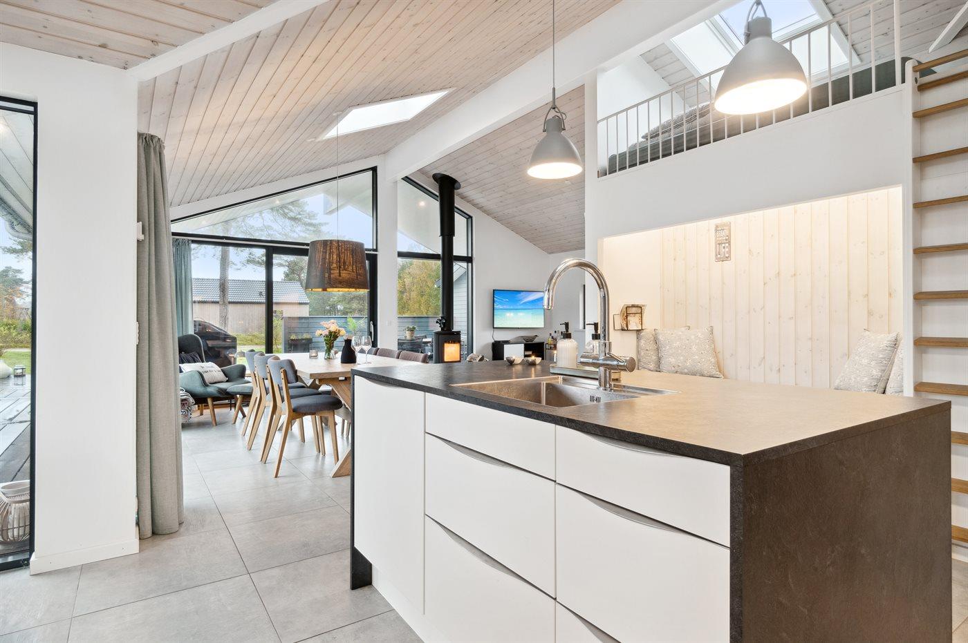 Køkkenet er udstyret med 1 køleskab. Der er 4 induktionskogeplader, varmluftovn, mikrobølgeovn samt opvaskemaskine.