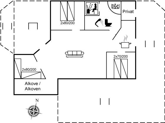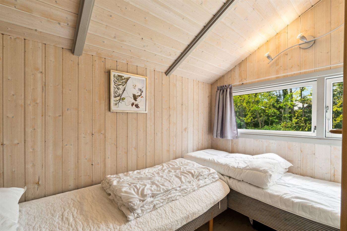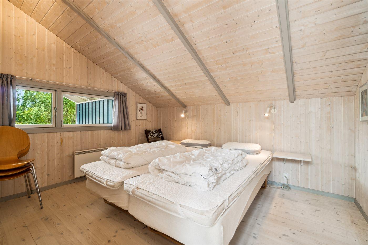Der er i alt 3 soveværelser. Sovepladserne fordeler sig på: 4 sovepladser i dobbeltsenge. 2 sovepladser i enkeltsenge. Derudover er der 1 stk. barneseng.