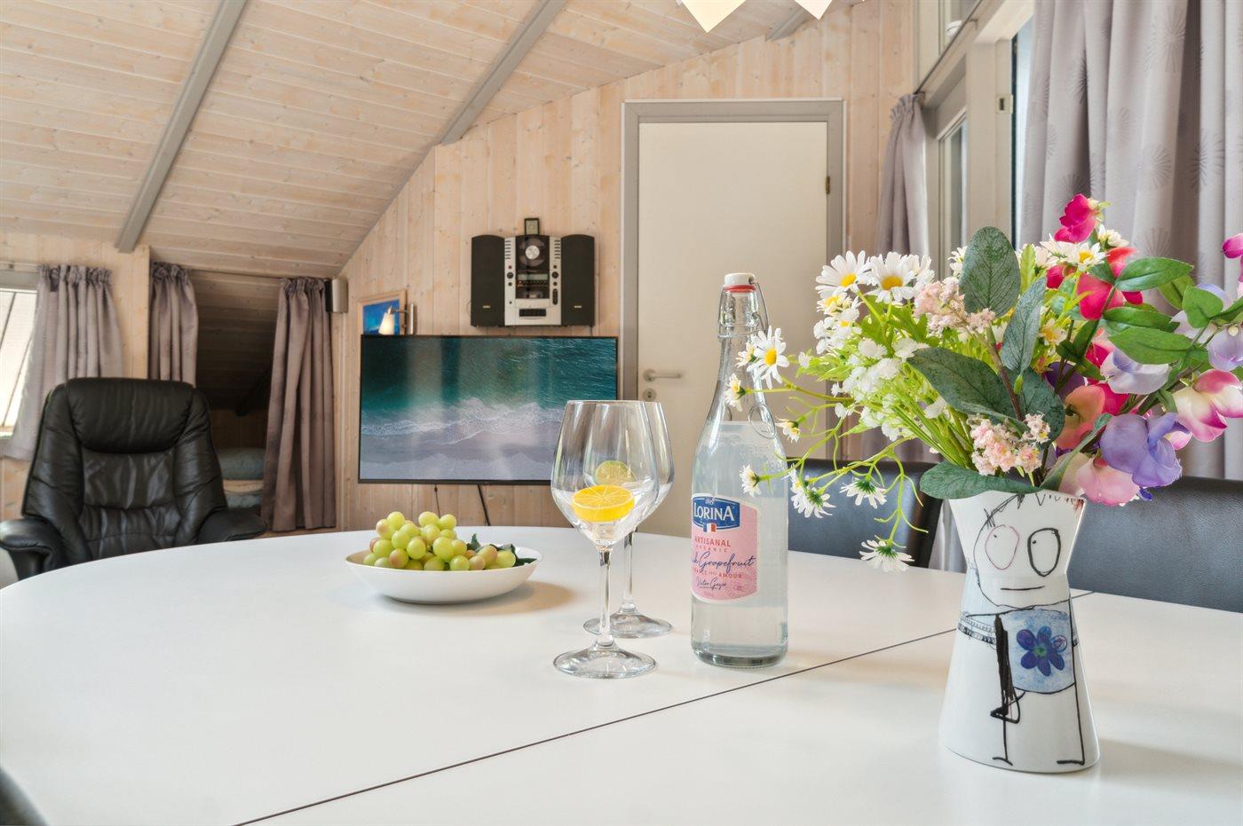 Husets store stue er samlingspunktet - her kan man spille spil, følge dagens nyheder på det store fladskærms-TV eller blot tage en lille lur i alkoven. Badeværelset byder på både sauna og spa, så der er også plads til wellness.