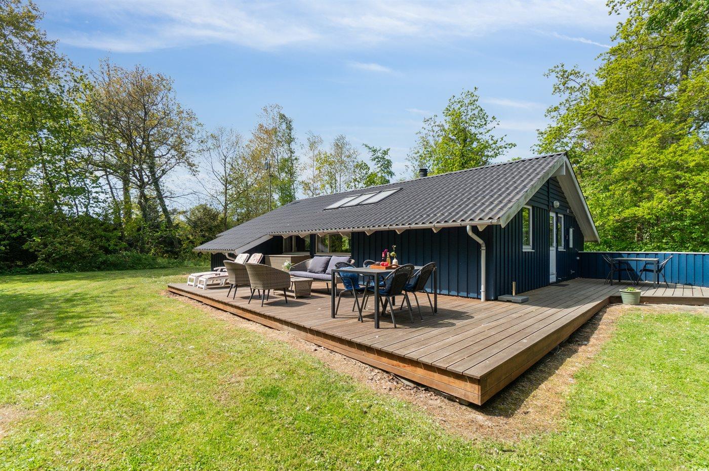 Et kvalitetssommerhus med en herlig beliggenhed og indbydende indretning – her finder I både wellness og store træterrasser ganske nær den børnevenlige sandstrand på Balka.