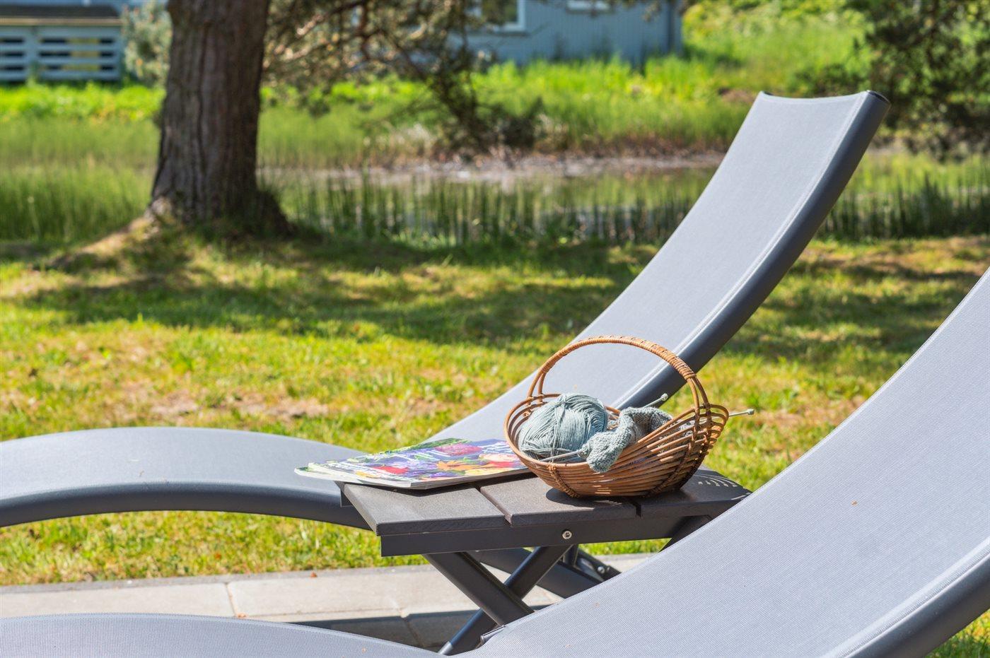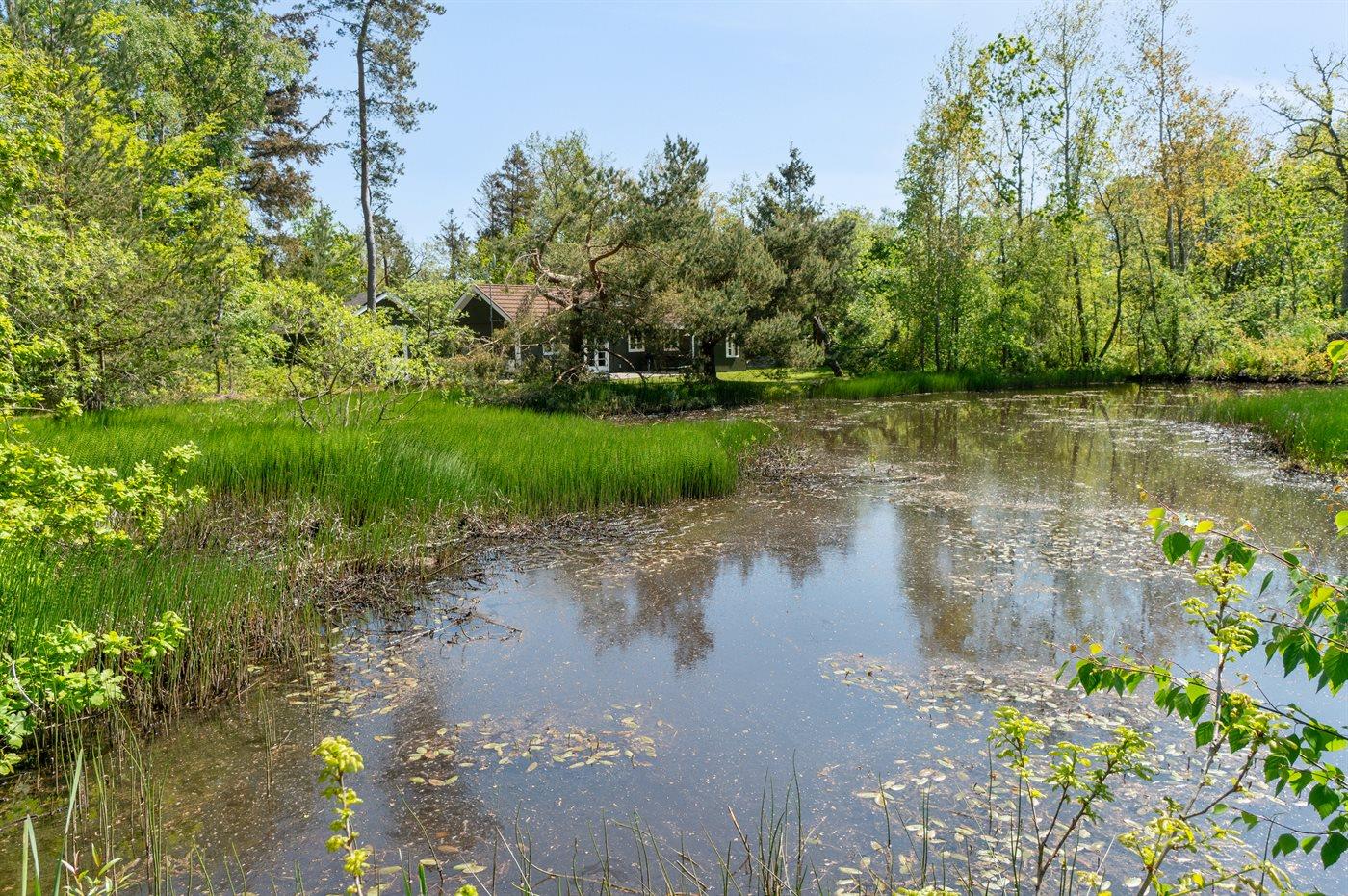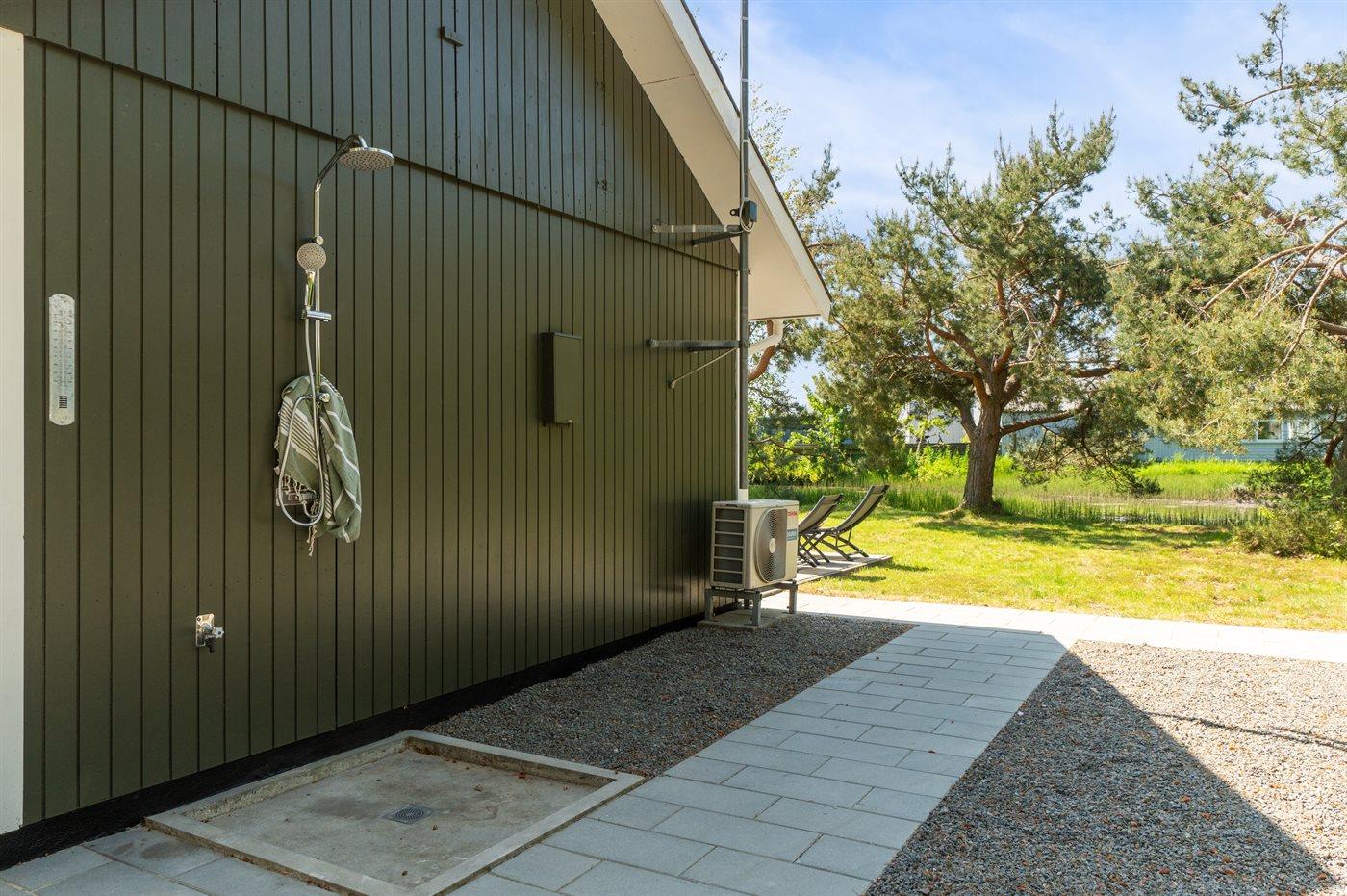 Ferieboligen er beliggende på en 1612 m² stor naturgrund. Der er 300 m til havet. Der er en sø i en afstand af 15 m. Nærmeste forretning er beliggende i en afstand af 2000 m. Til ferieboligen hører 28 m² terrasseareal. Desuden er der 11 m² overdækket terrasse. Der er redskabsrum. Udendørs bruser. Grill til rådighed. Der er carport til rådighed. Parkering ved ferieboligen.