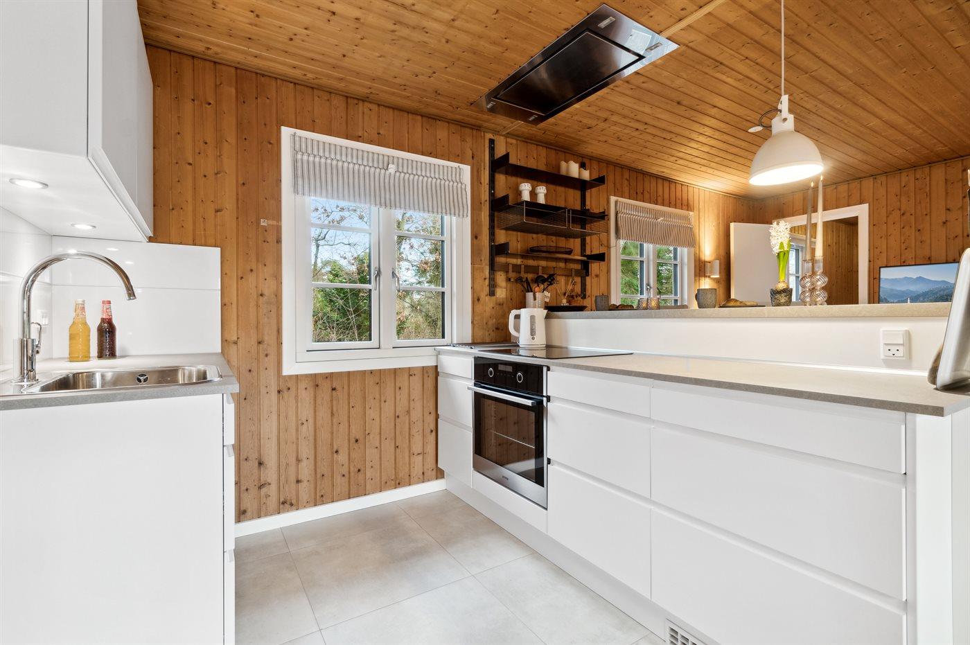Køkkenet er udstyret med 2 køleskabe. Der er 4 induktionskogeplader, varmluftovn, mikrobølgeovn samt opvaskemaskine.