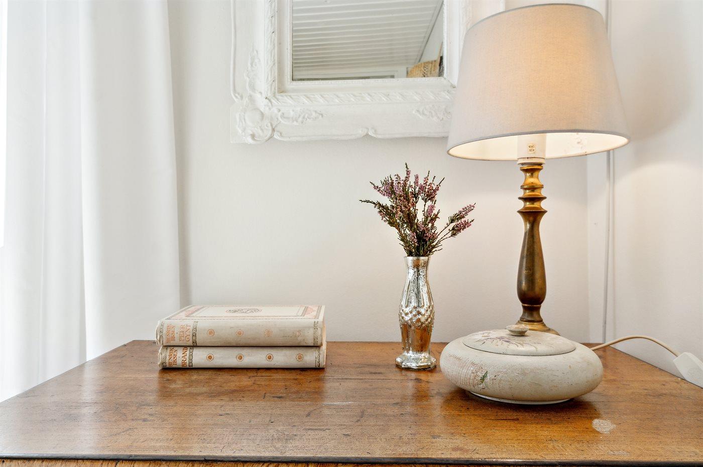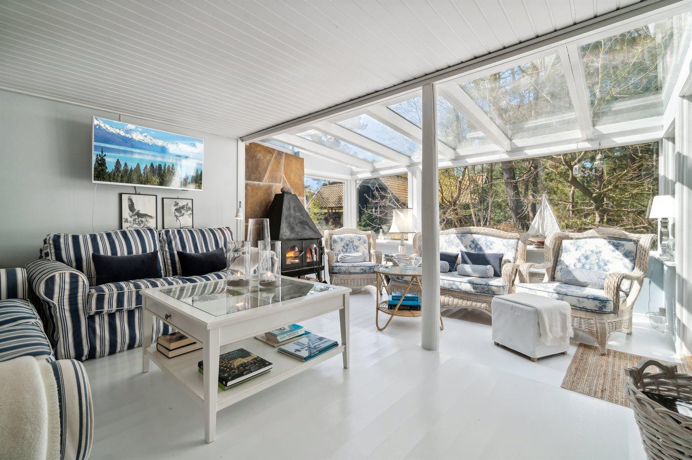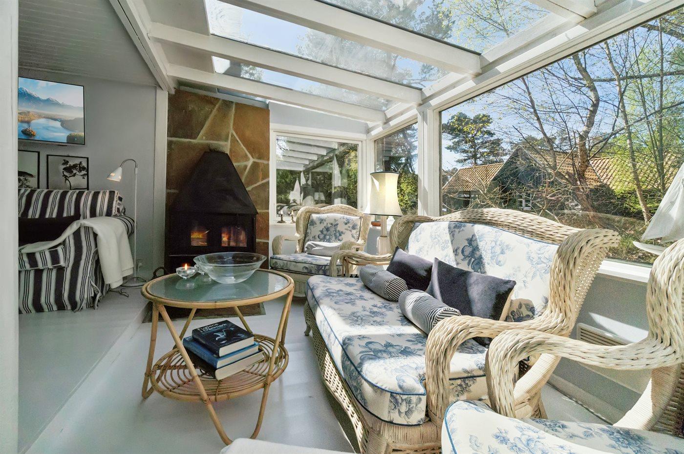 Der findes et flot nyt køkken, et pænt badeværelse og en stor opholdsstue med spiseafdeling, som ligger i åben forbindelse med en udestue, hvilket giver virkelig meget lys til det i forvejen lyse interiør. Alt interiør er farvemæssigt afstemt. Paneler, hvide vægge og lofter er alt sammen med til at understrege det lette og lyse indtryk af huset.