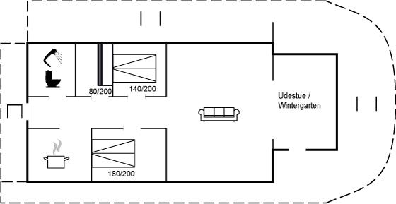 Der er i alt 3 soveværelser. Sovepladserne fordeler sig på: 4 sovepladser i dobbeltsenge. 2 sovepladser i køjeseng.