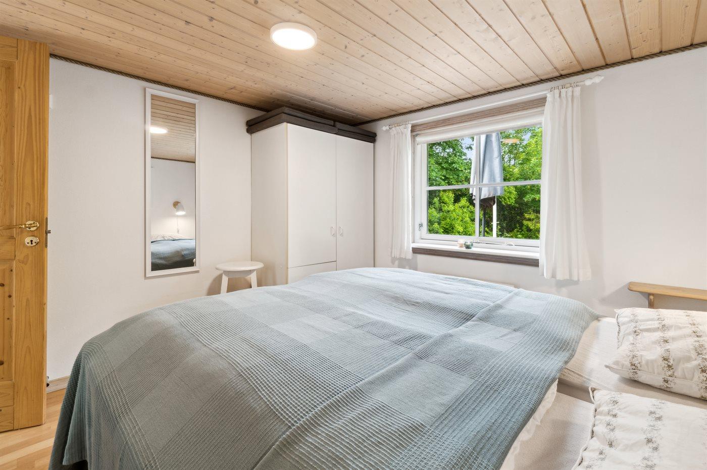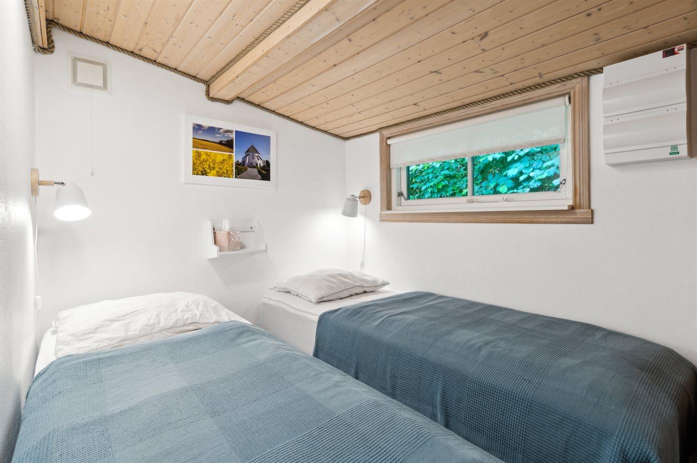 Der er i alt 2 soveværelser. Sovepladserne fordeler sig på: 2 sovepladser i dobbeltseng. 2 sovepladser i enkeltsenge. Derudover er der 1 stk. barneseng.