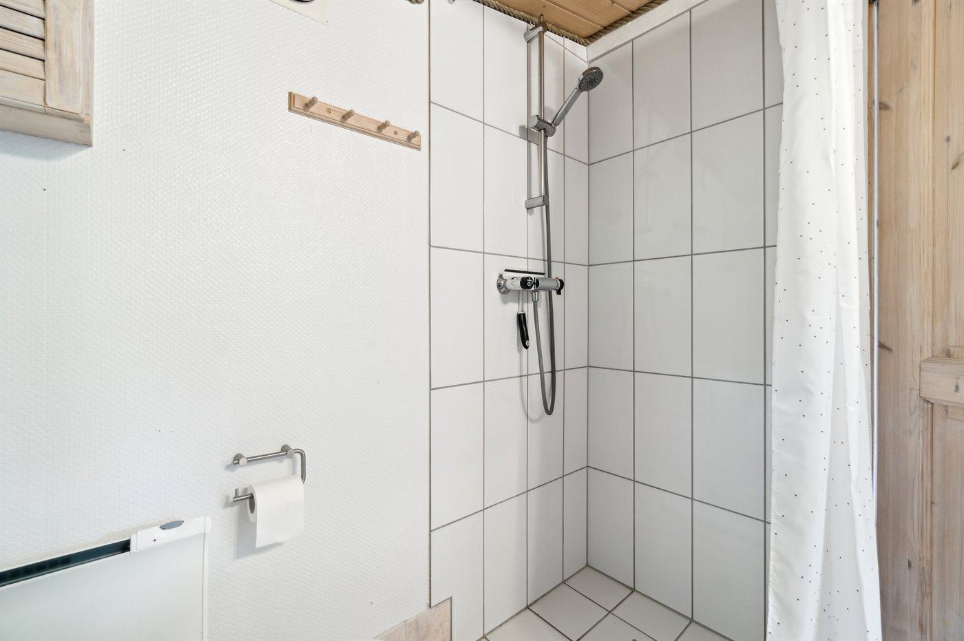 Der er 1 badeværelse med bruser og 1 toilet.