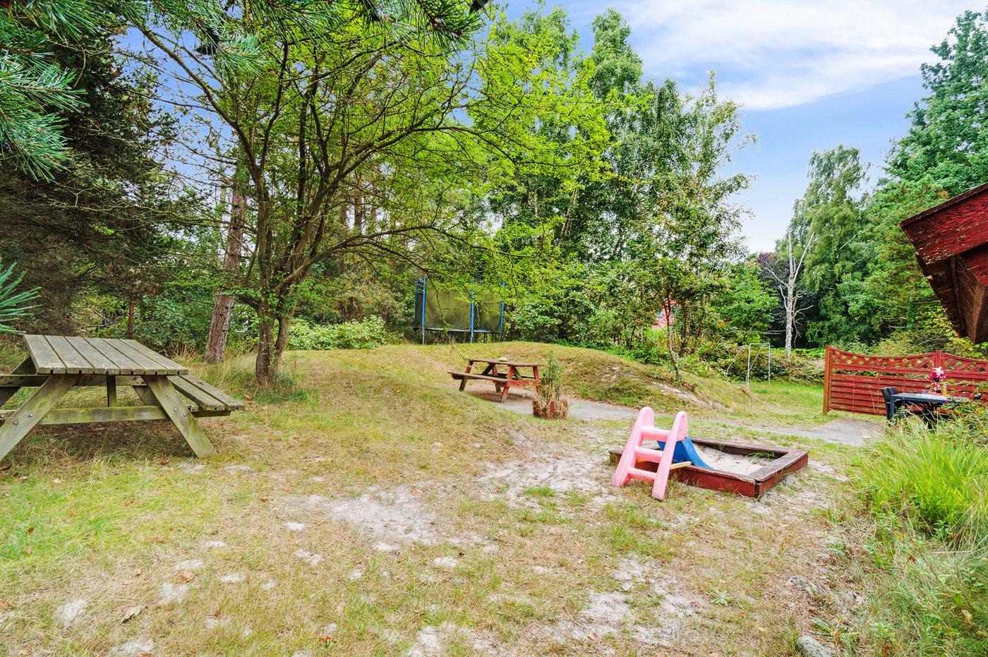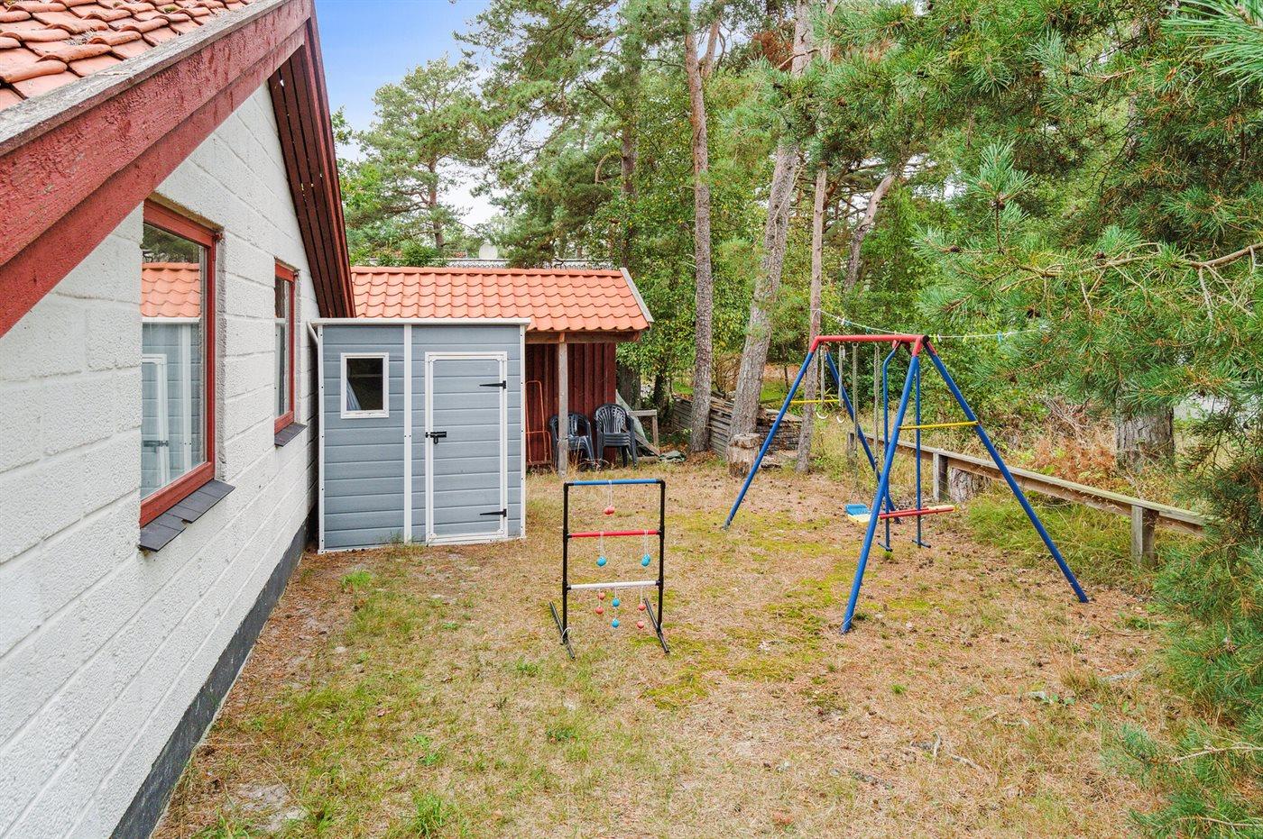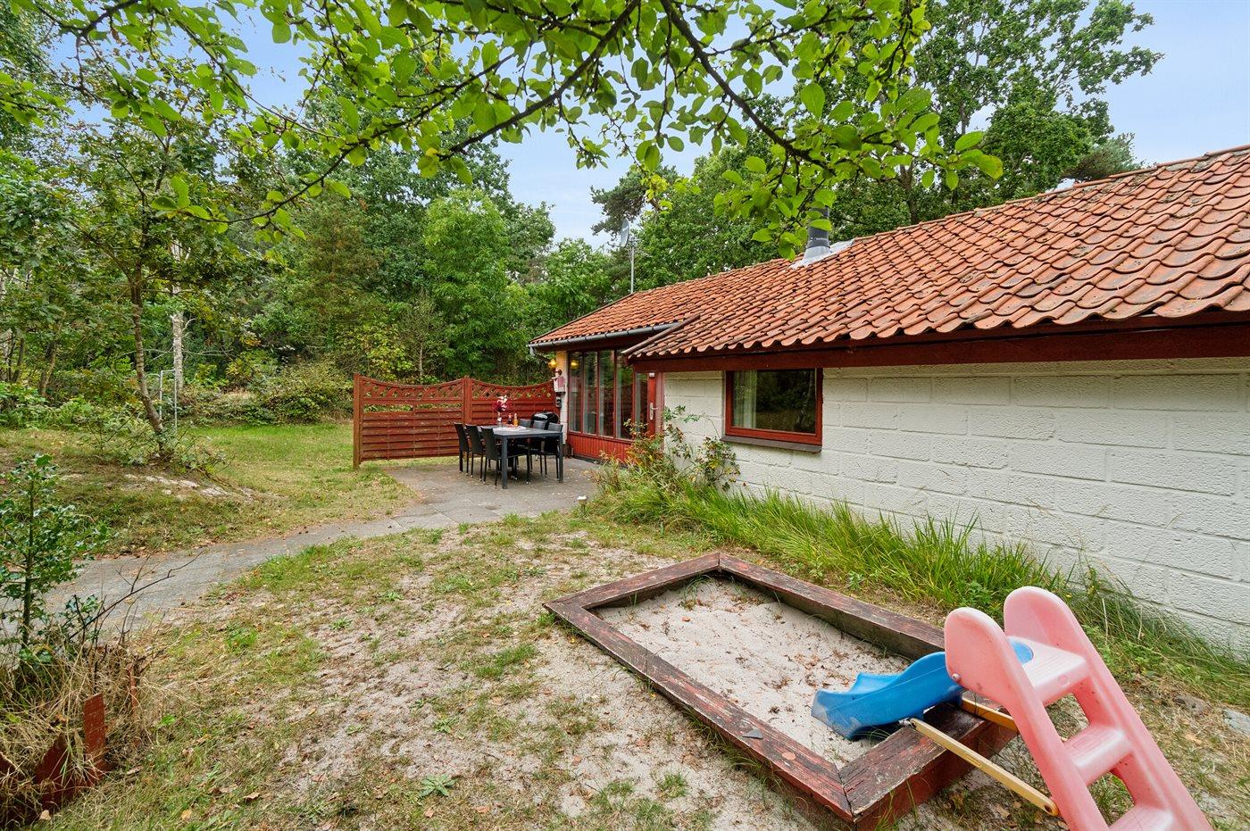 Ferieboligen er beliggende på en 1100 m² stor naturgrund. Der er 300 m til havet. Nærmeste forretning er beliggende i en afstand af 1500 m. Til ferieboligen hører åbent terrasseareal. Sandkasse. Grill til rådighed. Parkering ved ferieboligen.
