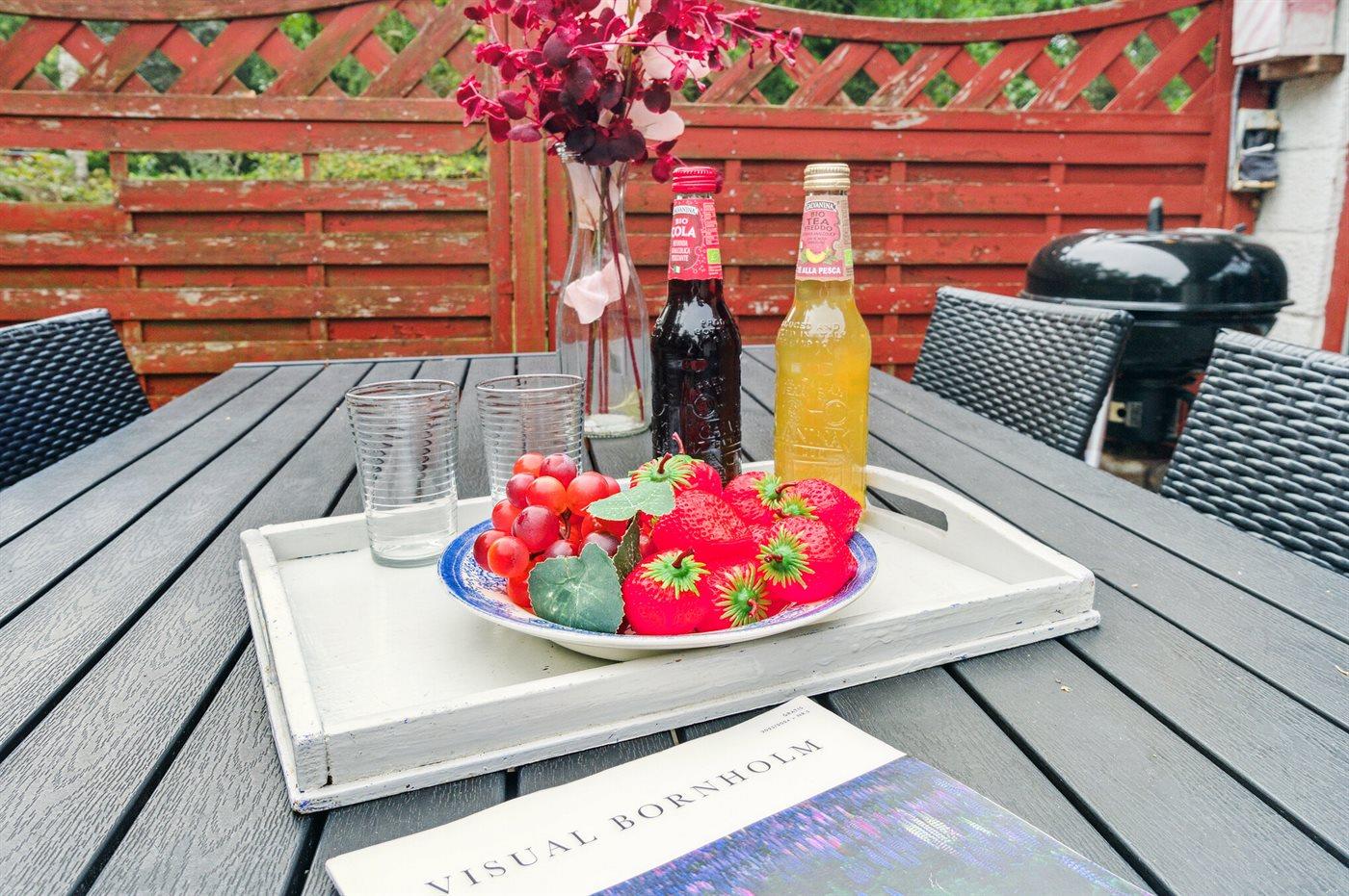 Hyggeligt feriehus nær Balka strand med to terrasser og legefaciliteter for børn.