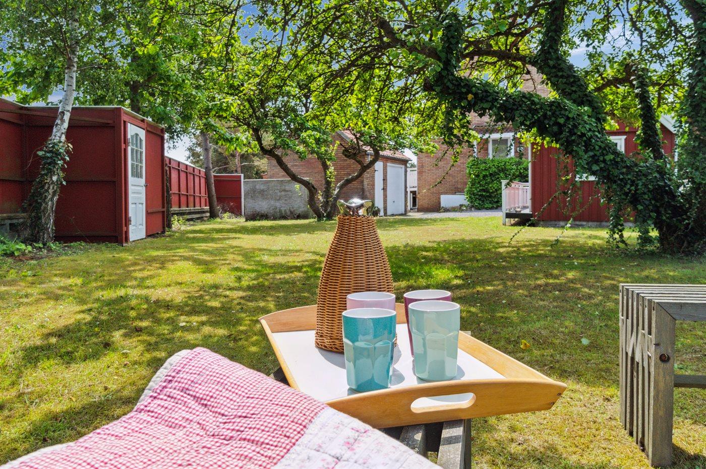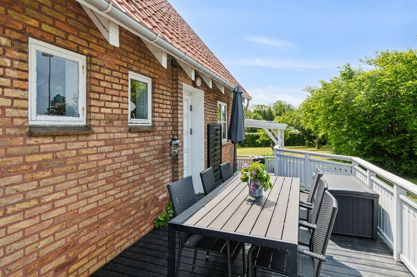 I den store have med æbletræer er der gode aktivitetsmuligheder for børnene med bålplads, gynge og et lille legehus, hvor man også kan trække sig tilbage og tage en lille lur, hvis det bliver tiltrængt. Flere træterrasser og en dejlig udestue giver gode muligheder for hyggeligt samvær i al slag vejr, som jo kan være omskifteligt.