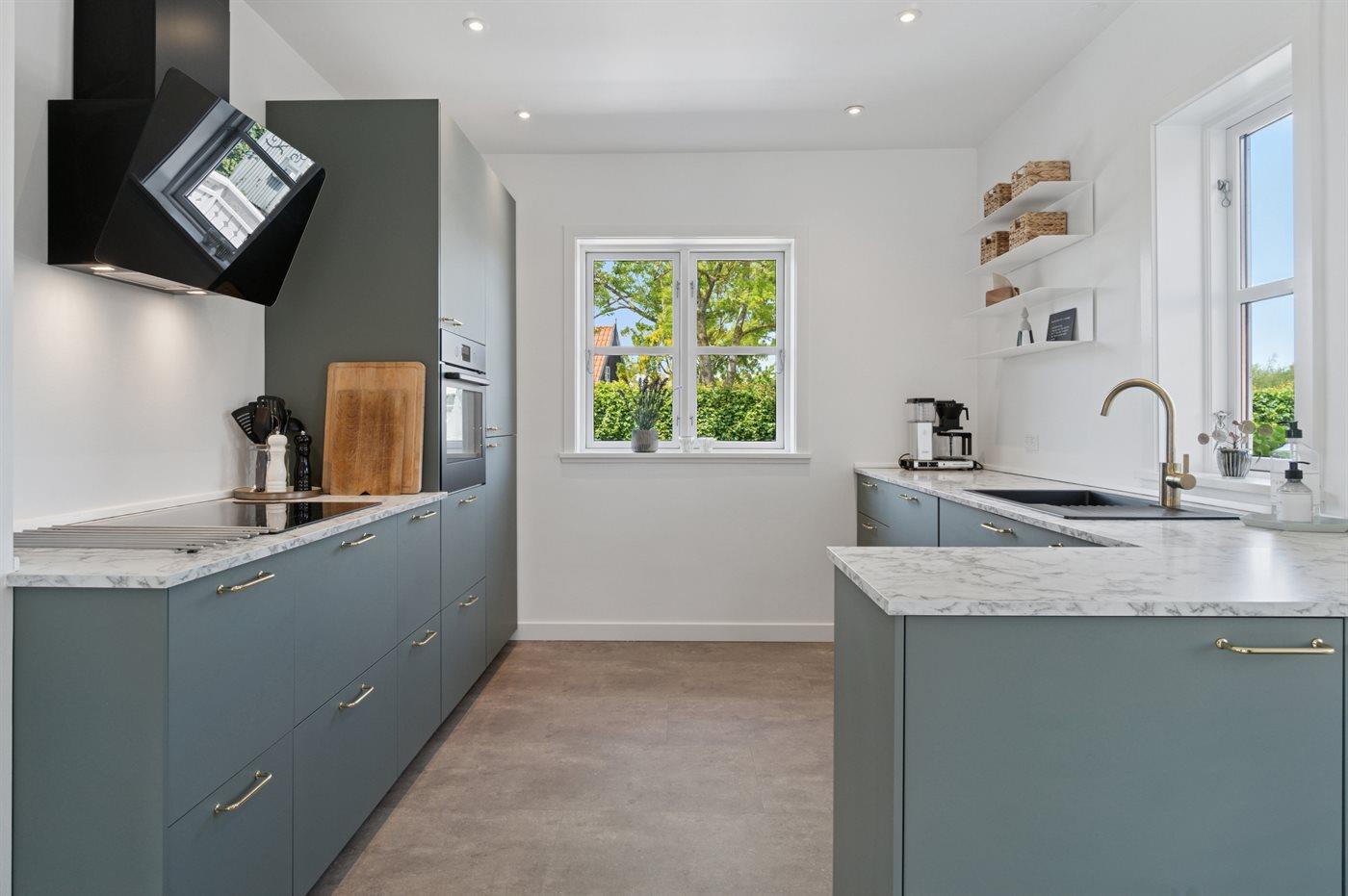 Køkkenet er udstyret med 1 køleskab. Der er 4 induktionskogeplader, varmluftovn, mikrobølgeovn samt opvaskemaskine.