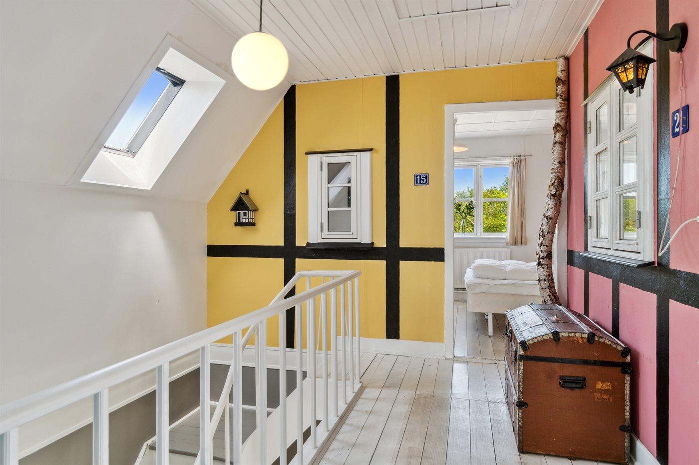 Huset er bygget i 3 plan - med soveværelser på 1. sal i et helt specielt og spændende miljø med en repos, hvor man får følelsen af at bo i en lille by med huse med bindingsværk - holdt i spændende farver - dette skal bare opleves. Den nye køkkenafdeling indbyder til fælles madlavning, når måltiderne skal tilberedes og nydes.
