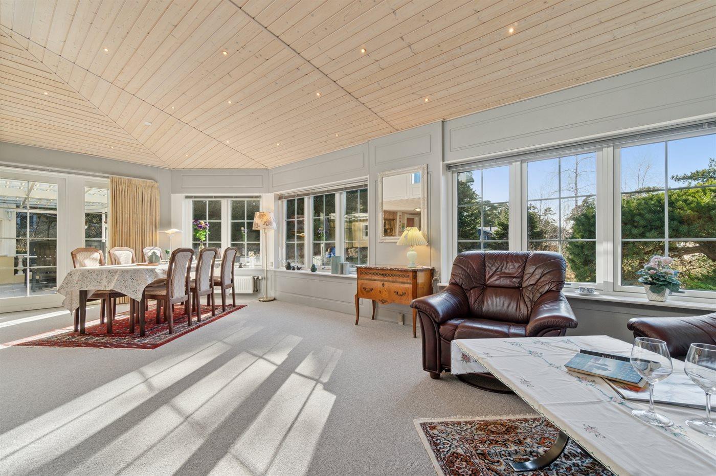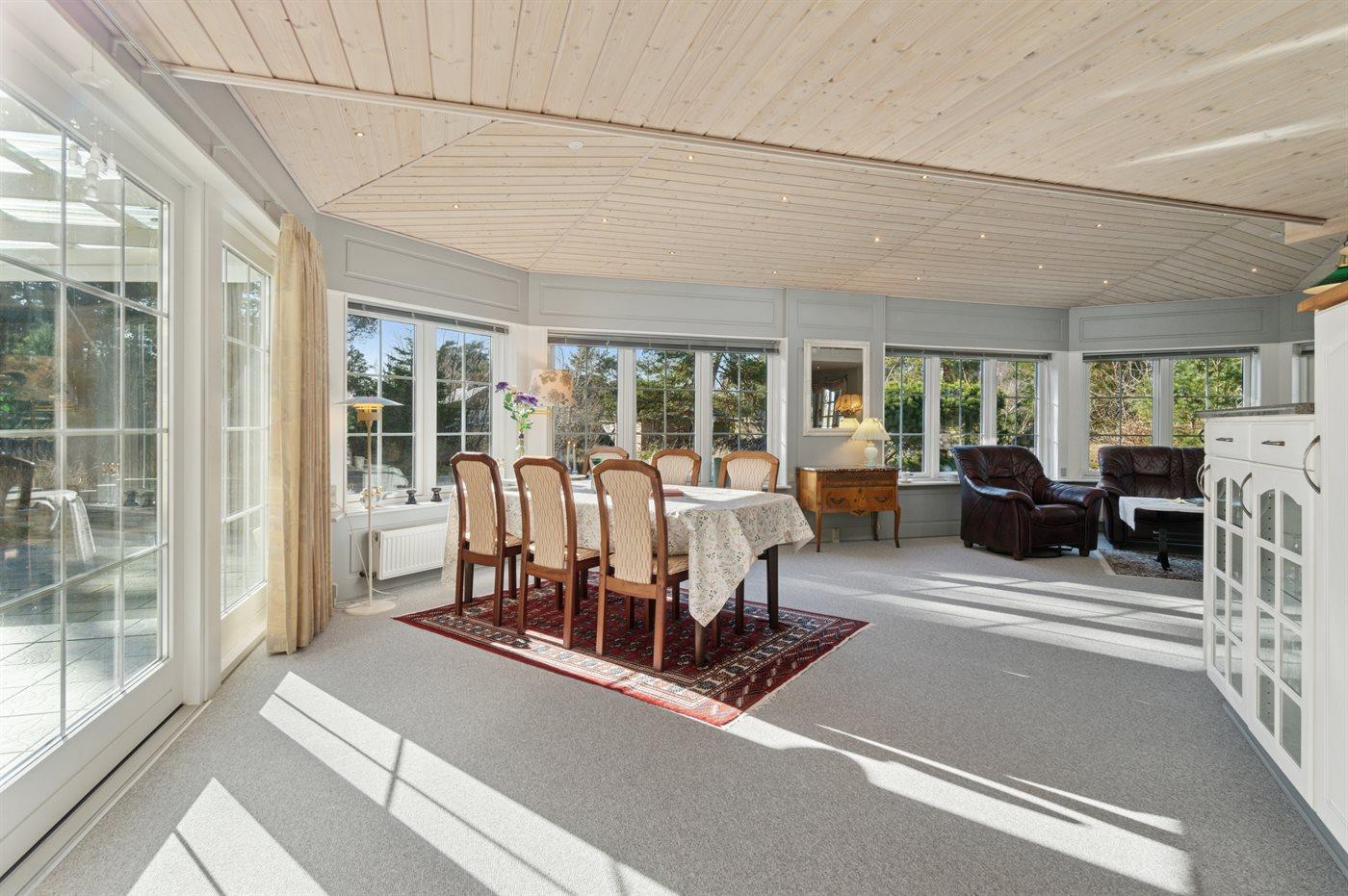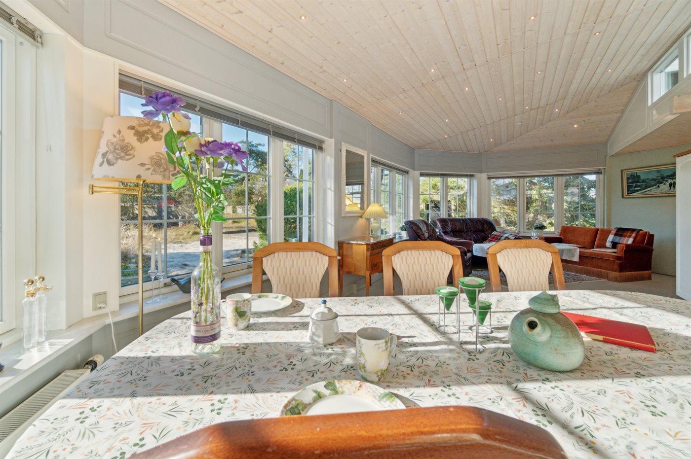 At nyde roen og freden kan man i dette hus - flere solterrasser på grunden og en fin overdækket terrasse med direkte udgang fra den store stue. Huset er stilfuldt møbleret og fremstår, sådan som ejerne gerne selv vil have det, når de selv nyder deres ferier i huset.