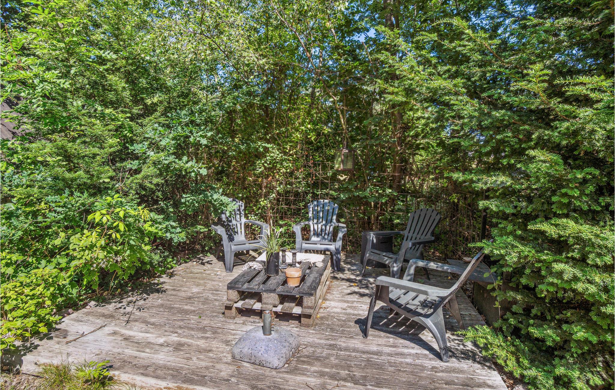 Udenfor finder I både åbne og overdækkede terrasser, som er udstyret med havemøbler af høj kvalitet – førstnævnte med komfortable loungemøbler og sidstnævnte med et fint spisebord, hvor grillretterne kan nydes. Der er yderligere en åben terrasse på grunden, såvel som en lille bålplads, hvis I fx ønsker at bage snobrød eller riste skumfiduser. Hovedattraktionen i udendørsområdet er selvfølgelig spabadet, hvor I kan sætte jer godt til rette om aftenen med en drink i hånden.