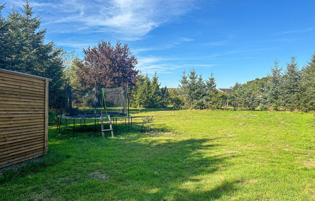 Tag plads ved den lille siddegruppe på træterrassen, og nyd den rolige atmosfære. Grunden byder på god plads til leg og afslapning, og de omkringliggende træer skaber en naturlig og beskyttet stemning. Børnene vil elske trampolinen i haven.