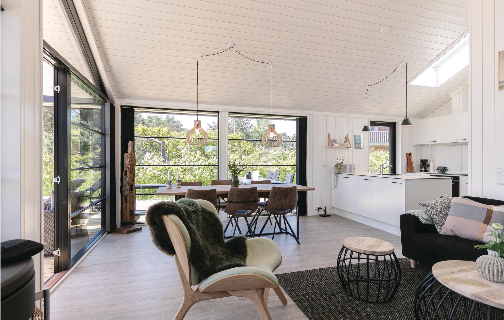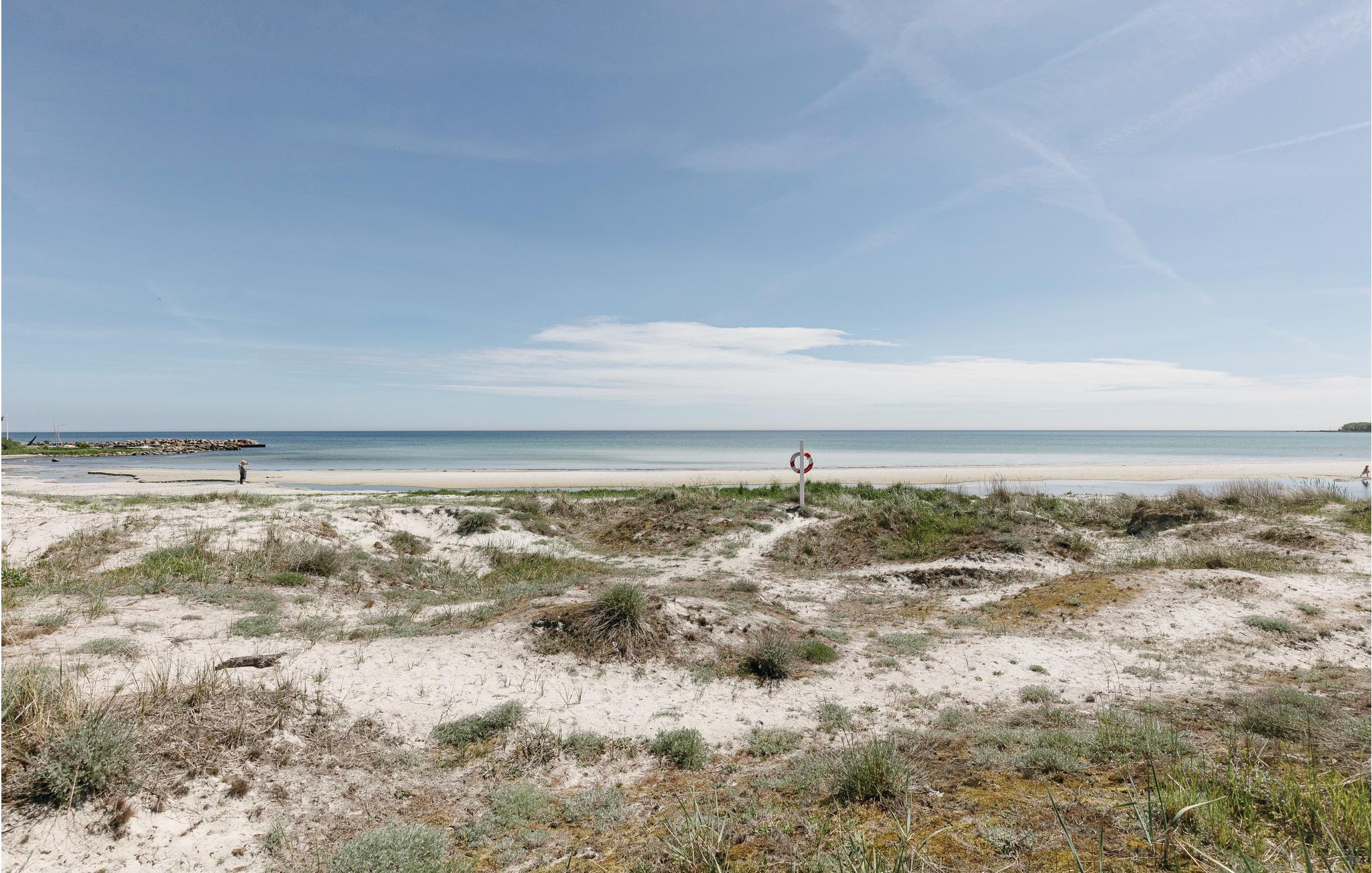 I 1. række til børnevenlig sandstrand og med skøn havudsigt ligger dette nyopførte og moderne indrettede sommerhus med masser af komfort, flot lysindfald og charme. Husets unikke beliggenhed, hvor I næsten sidder med fødderne i sandet, gør det nemt at tage en morgen- eller aftendukkert, og ro og afslapning er absolut i højsædet her. Dette skønne og velindrettede sommerhus byder på en afslappende og moderne indretning med fokus på kvalitet og hygge, og det flotte åbne køkken gør det nemt og behageligt at tilberede feriemåltiderne. Nydelig kombineret spise- og opholdstue med komfortable og moderne møbler, skøn brændeovn og varmepumpe til de lidt køligere perioder, og naturligvis gratis internet til rådighed. Den store træterrasse rummer mange muligheder for hygge og afslapning, og har I været en tur i vandet, så kan I nemt bruge husets udebruser til lige at skylle jer af. Tag en gå eller løbetur langs stranden eller tag en tur ud til det nærliggende fiskerleje, Snogebæk, hvor der er røgeri og flere gode småbutikker og restauranter.