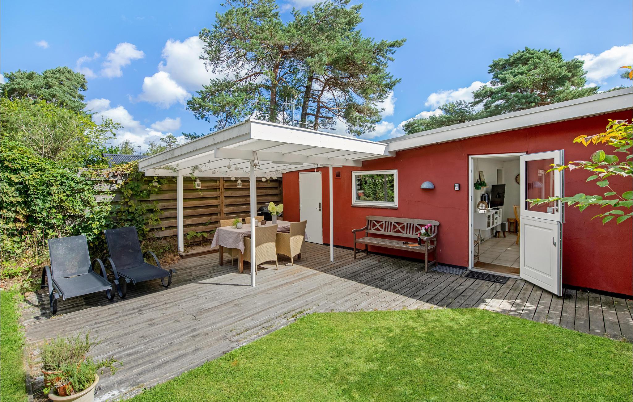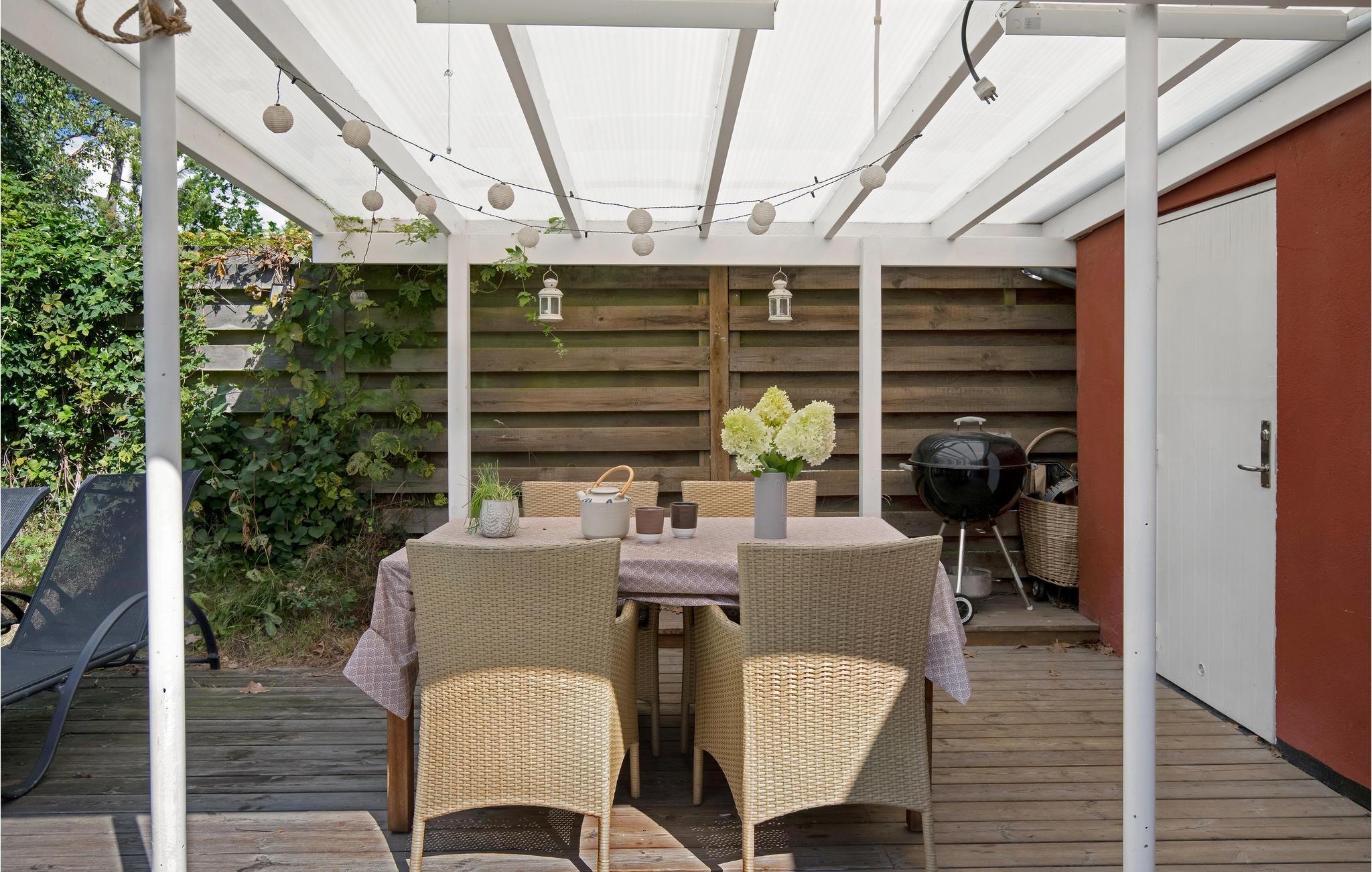 Charmerende sommerhus 150 m fra Balka strand med overdækket terrasse og gratis internet.