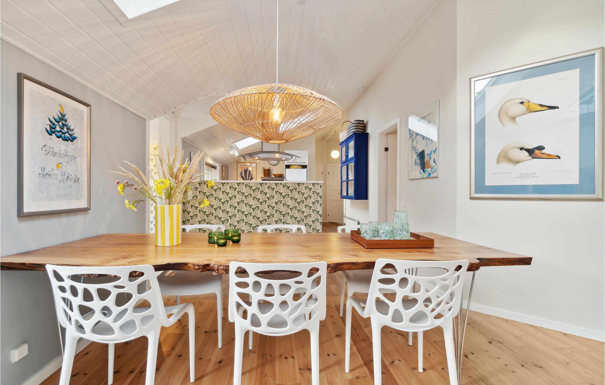 Glæd jer til en afslappende ferie i dette skønne og komfortable hus. Indenfor byder en lys og venlig atmosfære jer velkommen, suppleret med nøje udvalgt indretning og dejlige møbler. Huset byder på en god åben planløsning, så I har masser af plads i opholdsrummet til at lave mad, spille spil eller smække fødderne op i sofaen. I kan også slappe af i spabadet på badeværelset, hvor I kan nyde en stille stund med wellness. Træd ud på den store hvide træterrasse, som ikke bare er et blikfang, men også byder på hyggekroge, hvor I kan trække jer tilbage med en bog eller bare nyde solen. Slut de lune sommerdage af med en lækker grillbuffet og planlæg jeres kommende udflugter og aktiviteter. Haven er også et skønt sted for jeres børn. I morgen kan I gå til den skønne Balka strand, der lokker med en næsten sydlandsk stemning. Nyd den næsten caribiske følelse og dyk ned i det friske vand.