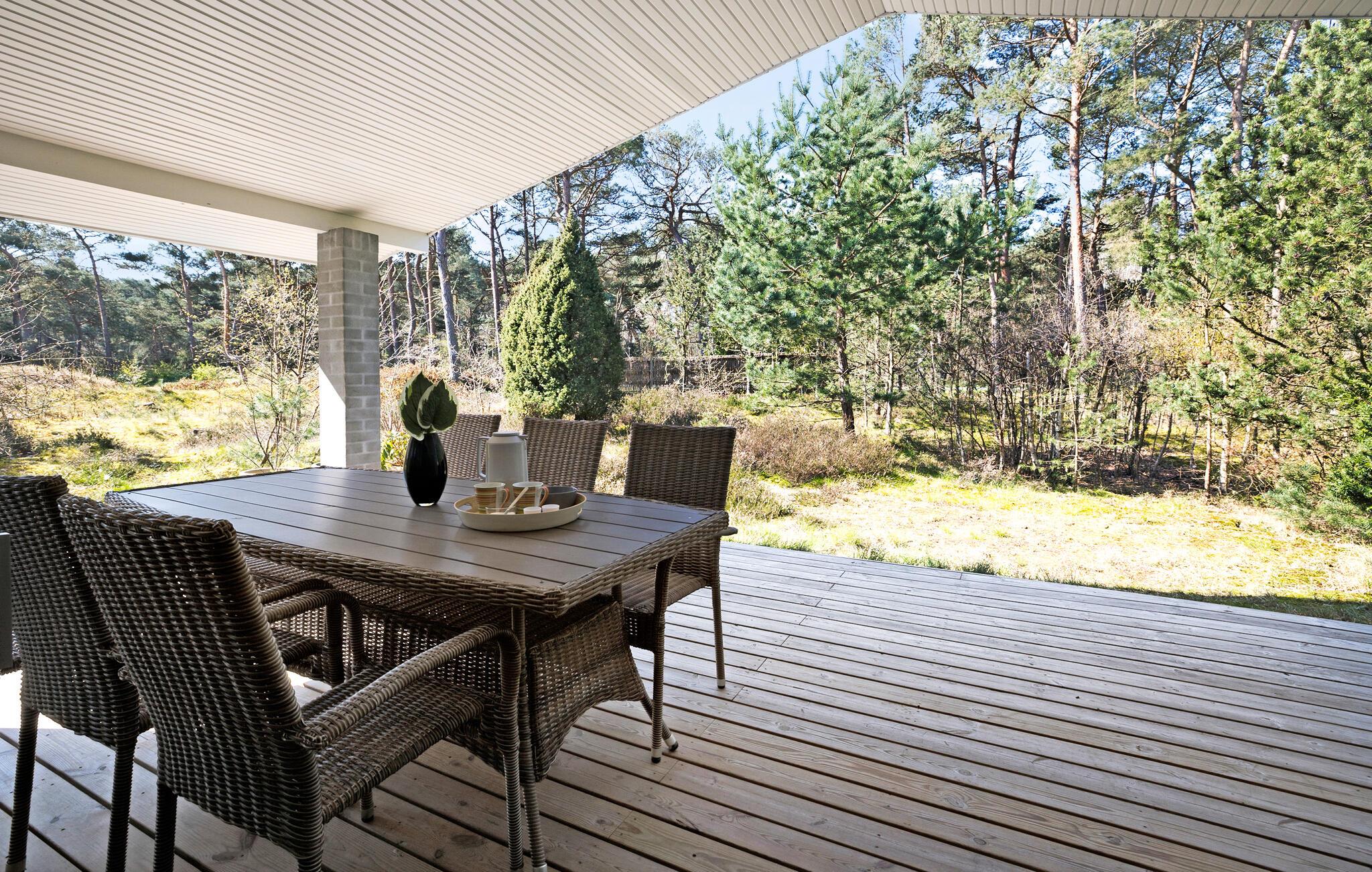 Indbydende feriehus nær Balka Strand med stor terrasse, moderne møbler og dejlig naturgrund.