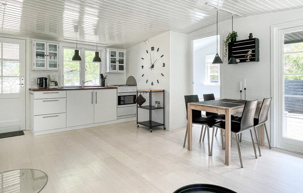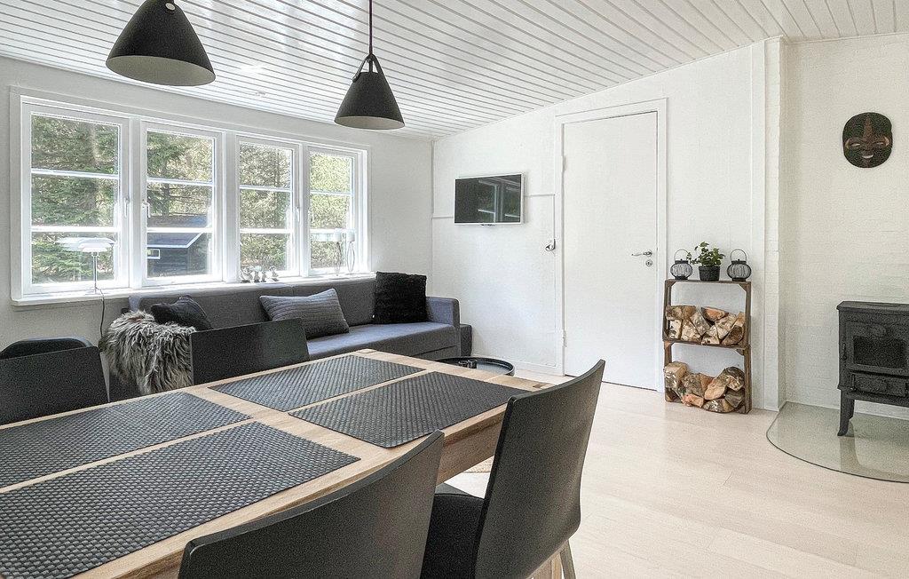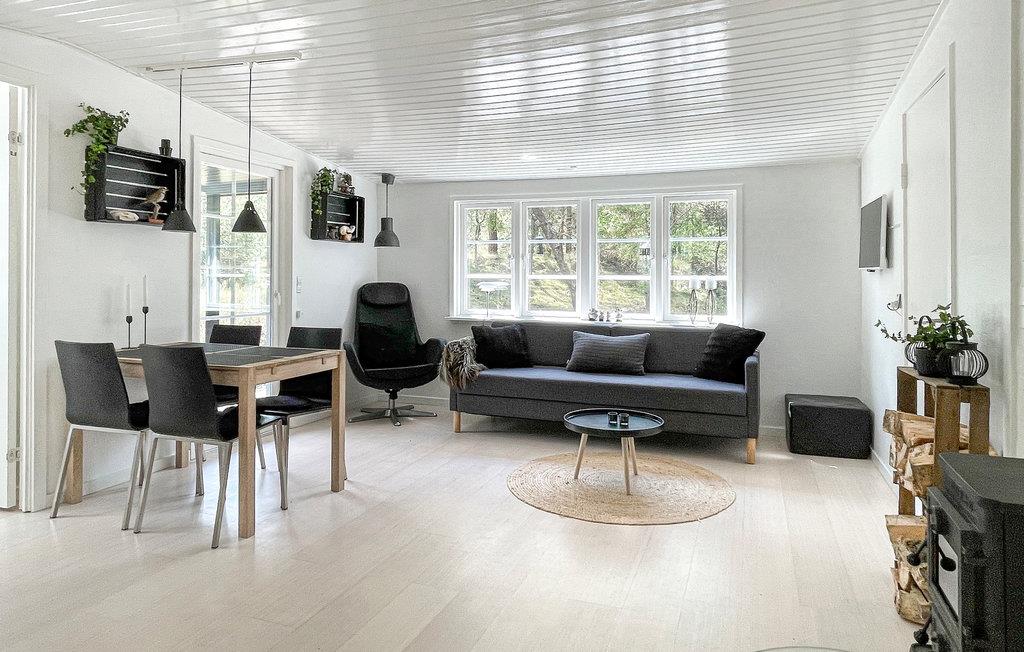 Med dette sommerhus får I en hyggelig base til en ferie med mange strandture og dejlige naturoplevelser. Den hyggelige, lyse og smagfuldt indrettede opholdsstue indbyder til mange gode stunder med eksempelvis en god film, et spil kort eller hyggesnak foran brændeovnen i vintertiden (brænde er inkl.) Husets køkkenafdeling ligger i forlængelse af stuen, så I kan socialisere, mens I laver mad. Derudover består huset af et badeværelse og to soveværelser.