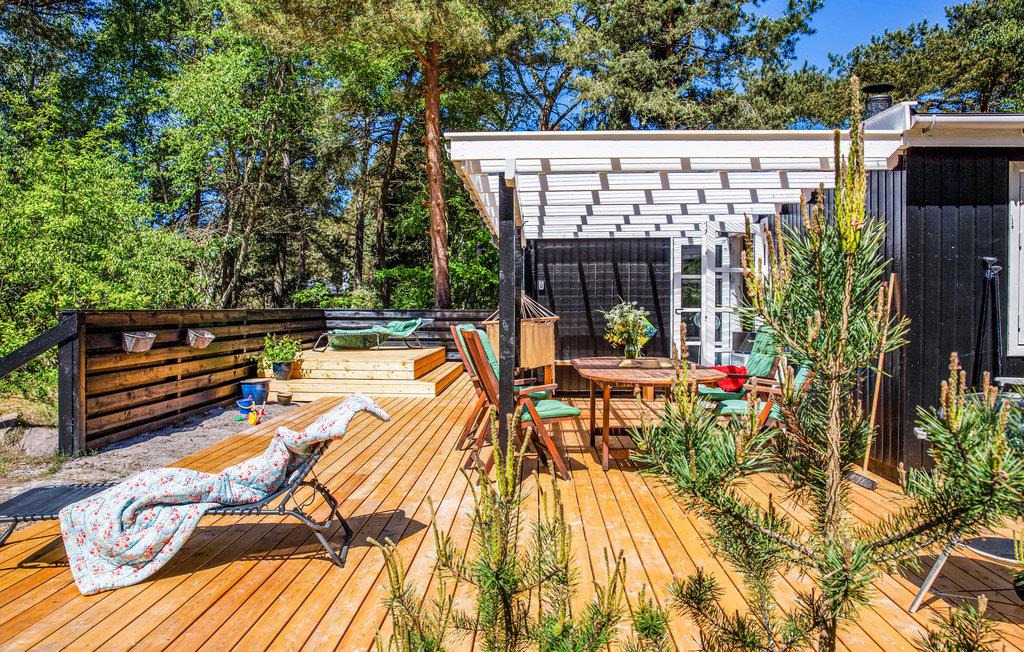 Når vejret er lunt, kan I rykke selskabet ud på den store terrasse med havemøbler og grill, hvor I både finder sol og skygge. Rundt om huset er der en dejlig grund, hvor I kan lytte til fuglefløjt og nyde freden og roen. Børnene kan indrette butik i legehuset eller svinge sig i gyngerne eller klatretovet.