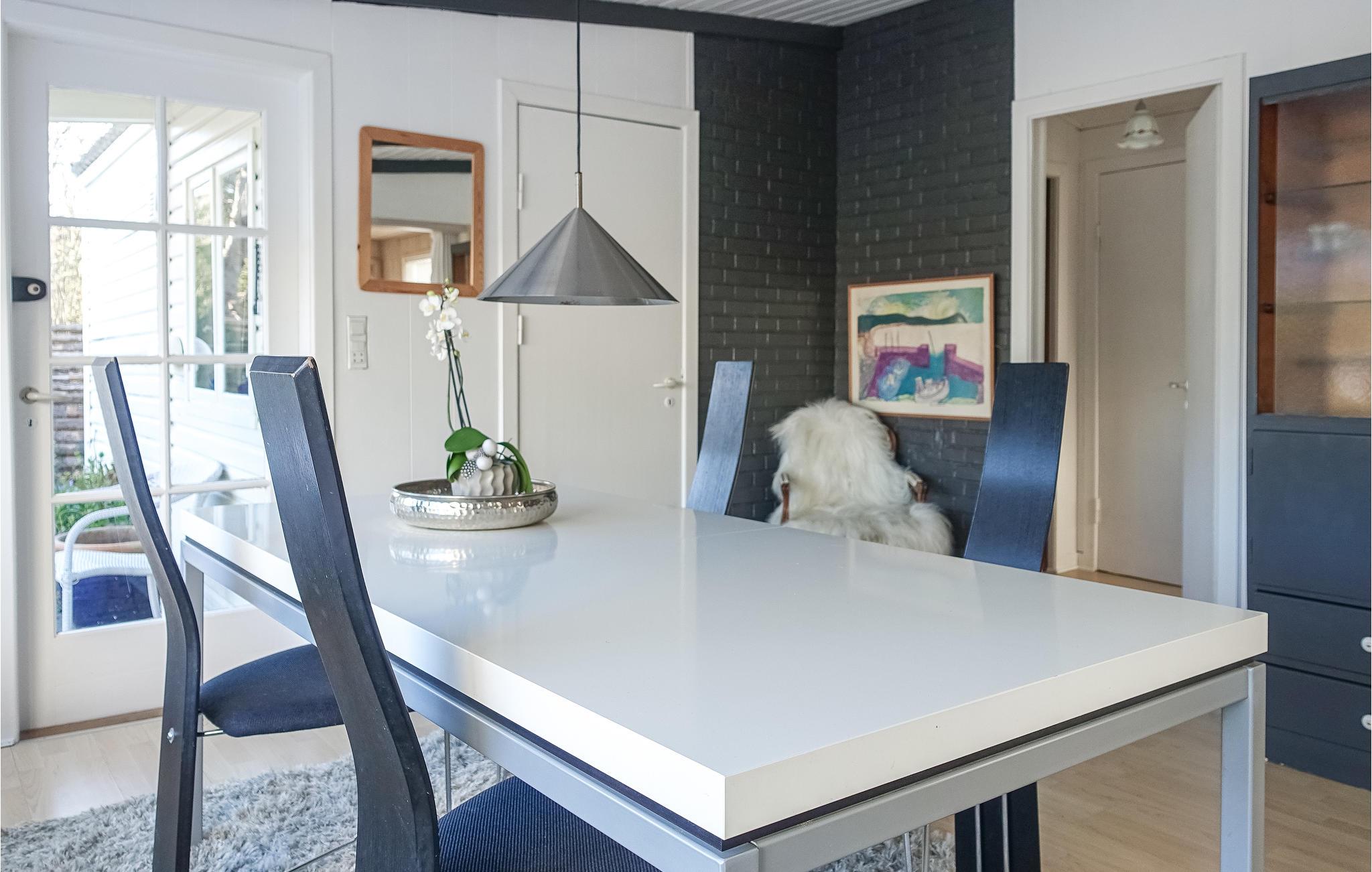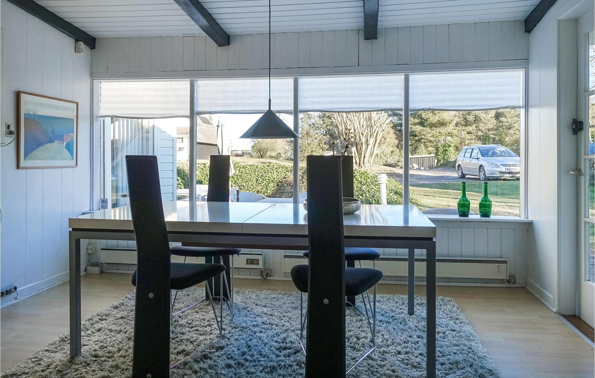 Velkommen til dette skønne sommerhus, der takket være smagfuld indretning, hyggeligt skrånende lofter, synlige træbjælker og trægulve- og vægge virkelig emmer af feriestemning. Den dejlige, lyse opholdsstue med flot, åbent køkken er husets naturlige mødested. Her kan nogle tilberede dejlige feriemåltider og samtidig hyggesnakke med dem, der flader ud i møblerne foran fjernsynet. Der er behagelig gulvvarme på det lækre badeværelse. Huset har også et vaskerum med vaskemaskine, tørretumbler og mikroovn.