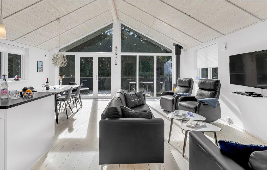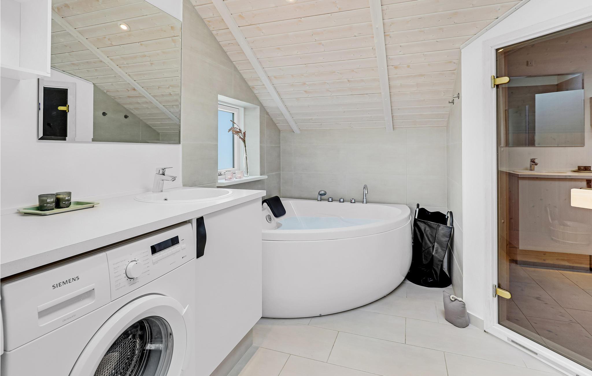 Velkommen til dette rummelige og utroligt lyse feriehus med moderne interiør. Huset har åbent til kip flere steder i huset, særligt bemærkelsesværdigt i stuen, der er så lækker, at den er svær at forlade. Her kan I godt glæde jer til tilberedning af lækre feriemåltider i det åbne, veludstyrede køkken, lange middage omkring spisebordet og filmaftener i bløde møbler (TV'et har Apple-TV). Badeværelset er også et højdepunkt: Ud over vaskemaskine og tørretumbler har det spa og sauna til herlig ferie-wellness. Huset har også en hems med TV, hvor de unge mennesker kan hygge sig.