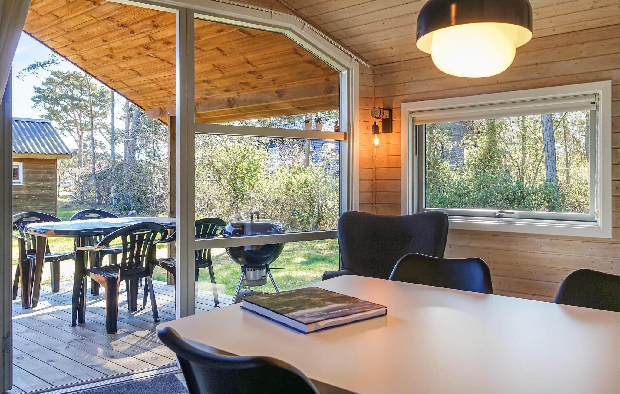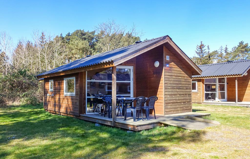 Hyggelig træhytte ved Balka Strand tæt på Snogebæk med overdækket terrasse og gratis internet – perfekt til familieferie.