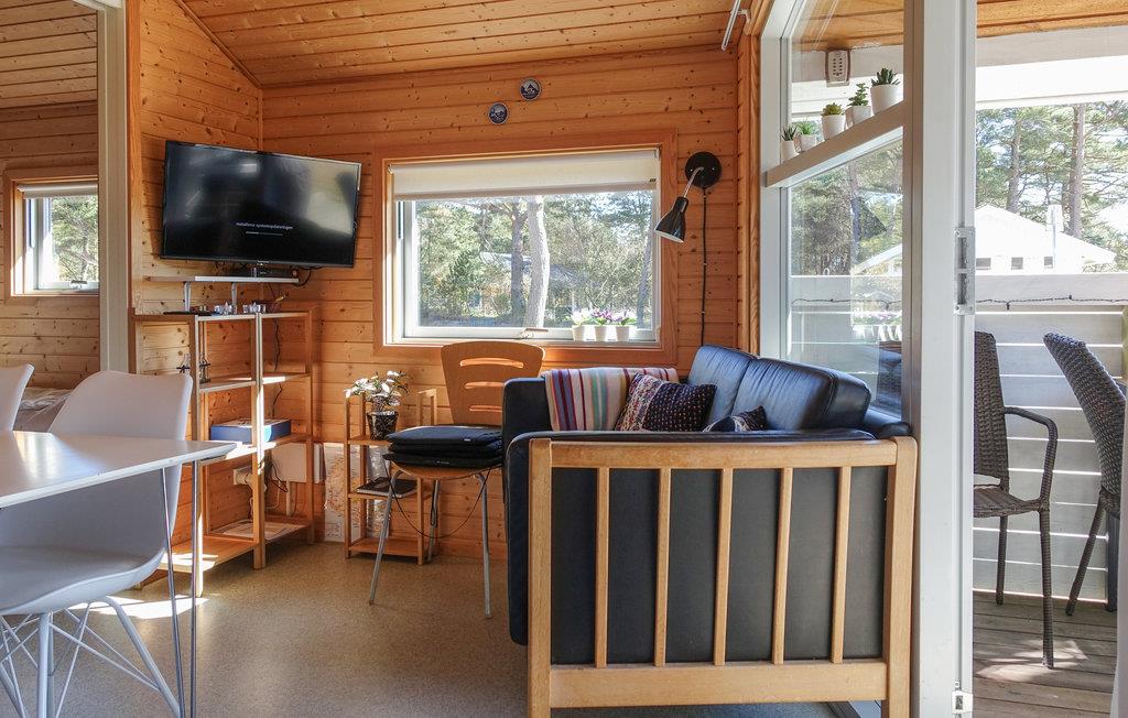 Hytten er velindrettet med plads til fem personer. Der venter et hjemligt interiør i skandinavisk stil med åbent køkken, hvor I finder alt det udstyr, I skal bruge. Tag en kop kaffe og sæt jer i det hyggelige opholdsrum eller find en stol på den solrige terrasse. Sovepladserne fordeler sig over en dobbeltseng, en køjeseng og en enkeltseng.
