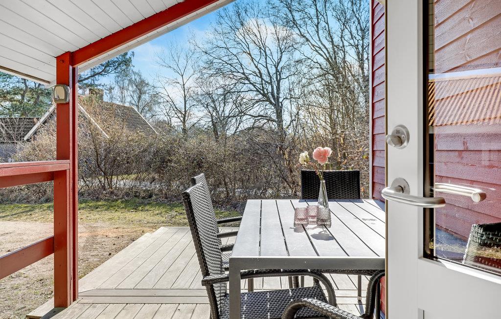 I kan grille på terrassen om sommeren, og på ekstra varme dage kan I finde skygge under halvtaget.