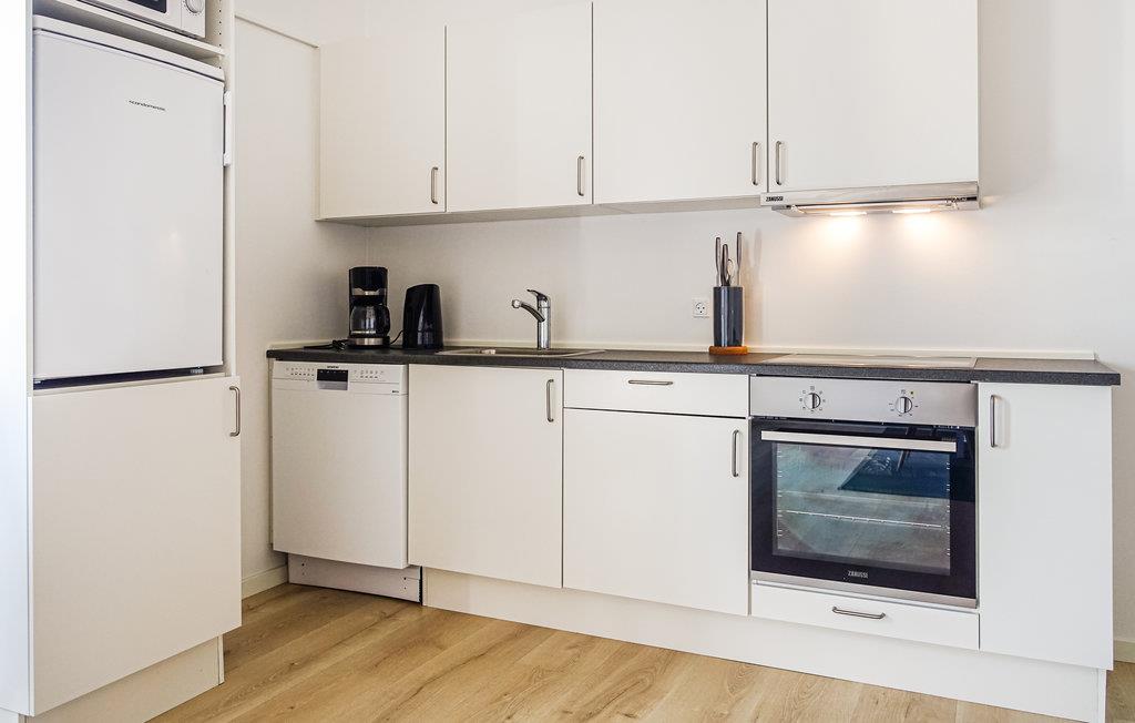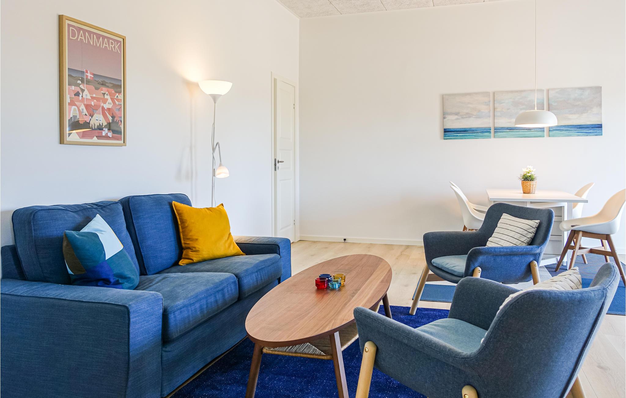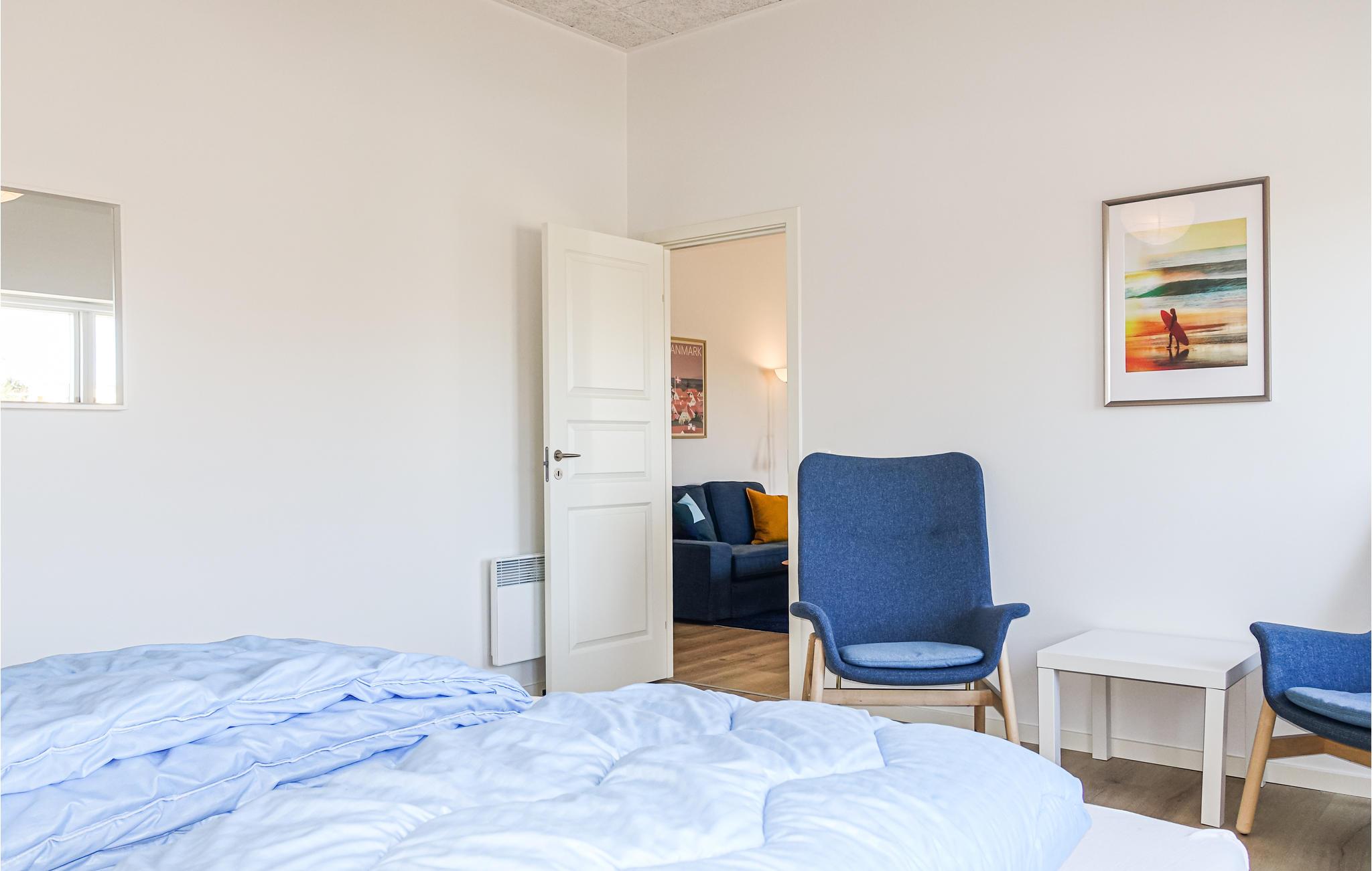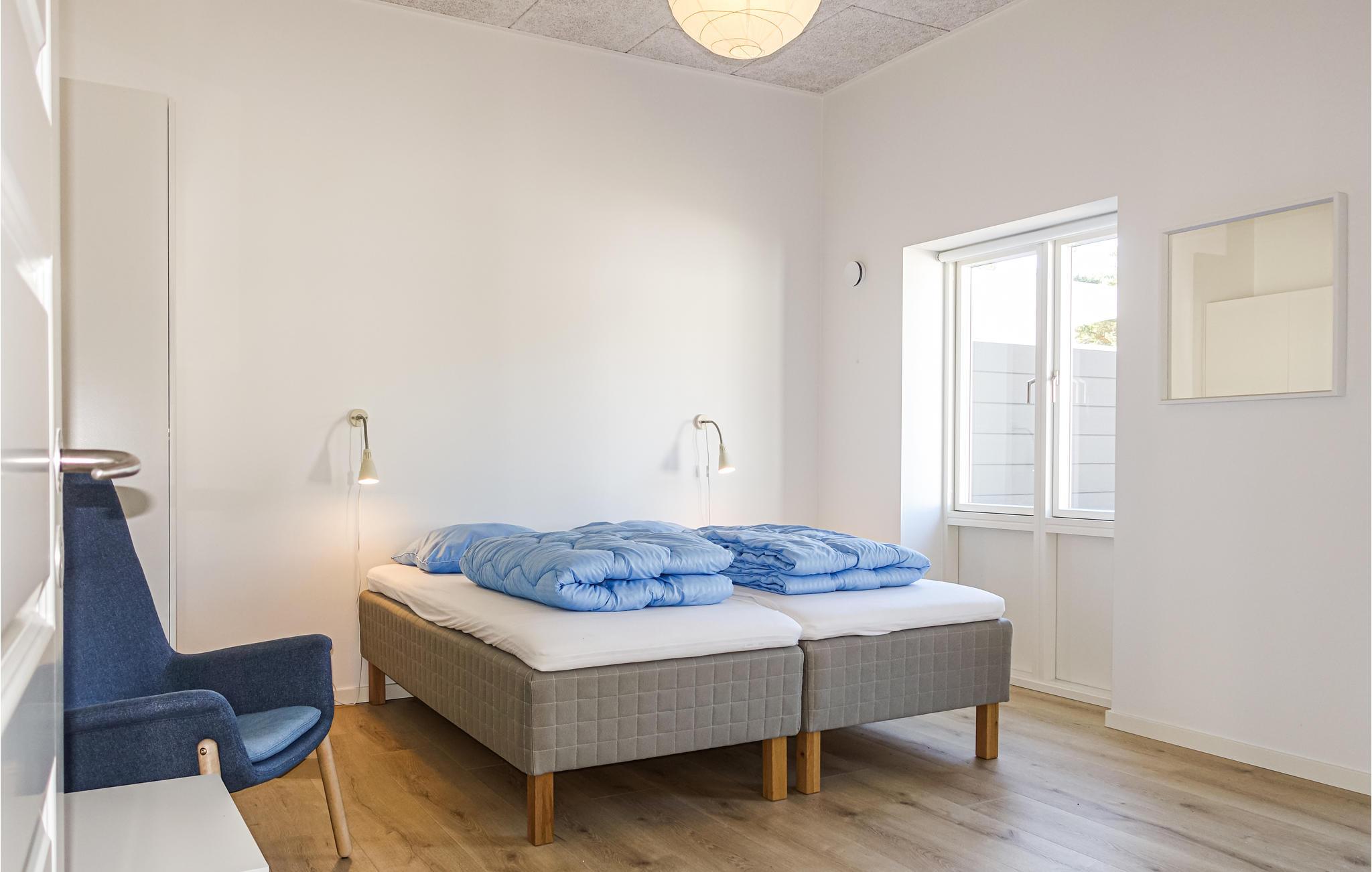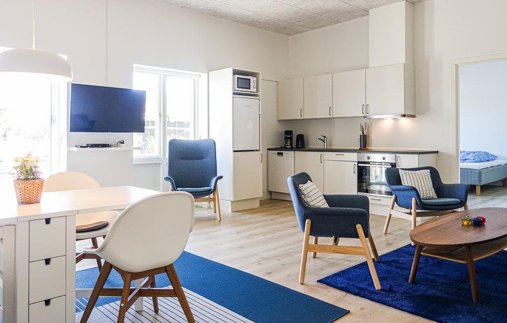 Glæd jer til denne hyggelige lille lejlighed, hvor pladsen er virkelig godt udnyttet. Der er to soveværelser og et herligt opholdsrum med flotte, moderne møbler og et dejligt lysindfald. Begynd dagen med en lækker morgenmad rundt om spisebordet, mens I planlægger dagens aktiviteter. Tag et bad og nyd gulvvarmen på badeværelset, ligesom der er en praktiske vaskefaciliteter, så her kan I vaske strandtøjet.