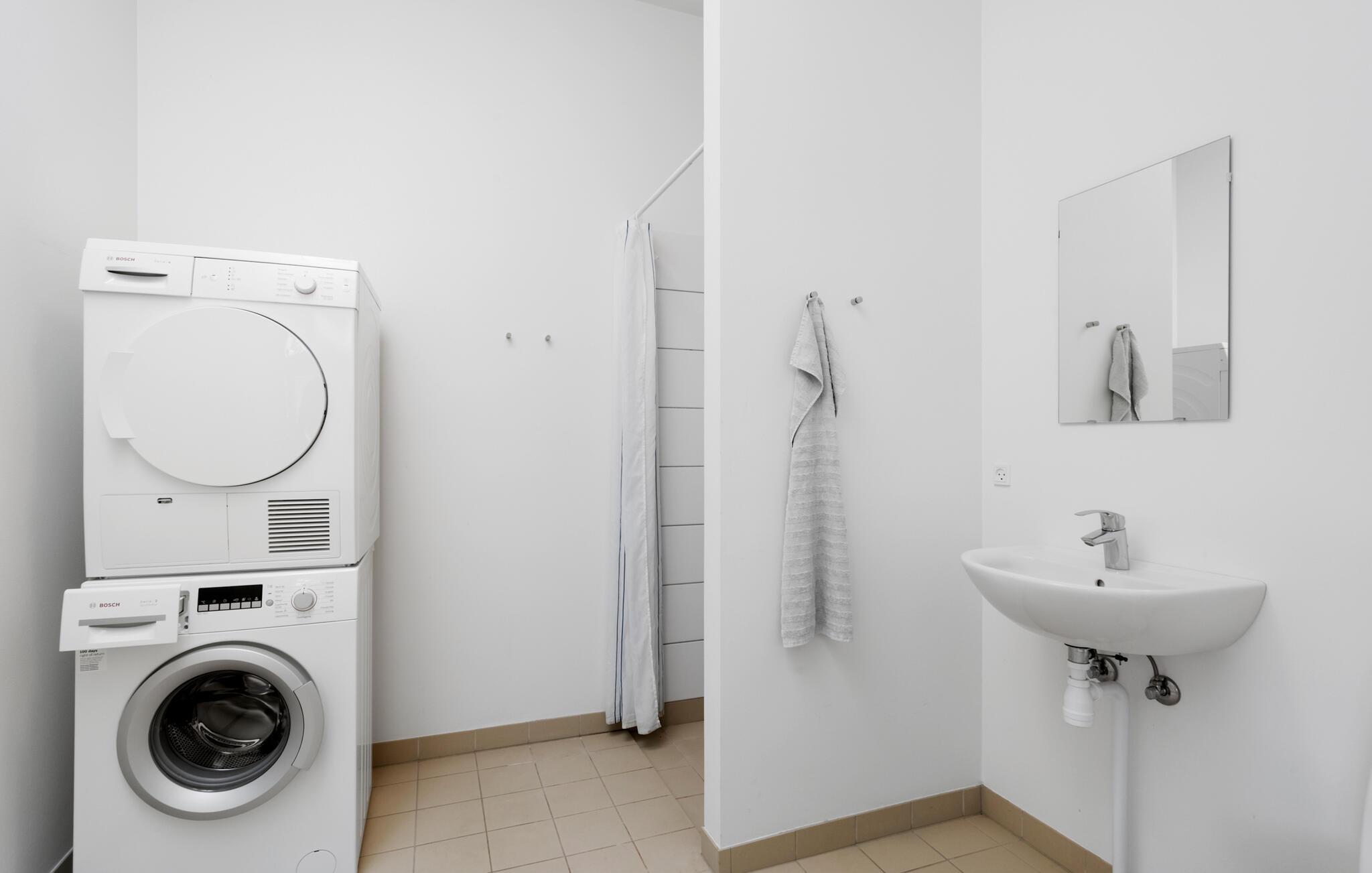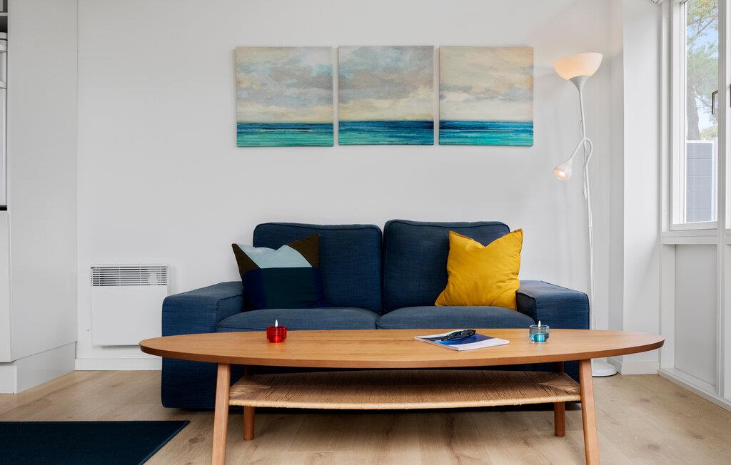 Glæd jer til denne hyggelige lille lejlighed, hvor pladsen er virkelig godt udnyttet. Der er to soveværelser og et herligt opholdsrum med flotte, moderne møbler og et dejligt lysindfald. Begynd dagen med en lækker morgenmad rundt om spisebordet, mens I planlægger dagens aktiviteter. Tag et bad og nyd gulvvarmen på badeværelset, ligesom der er en praktiske vaskefaciliteter, så her kan I vaske strandtøjet.