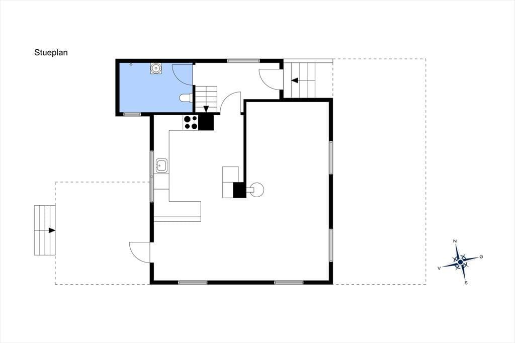 Sommerhusets beliggenhed er så tæt på stranden, at man kan høre bølgerne. Haven er velholdt og skærmet fint af mod indkig og lukket med stakit mod strandvejen. Udekøkken med koldt vand, gas grill og masser af krydderurter til fri afbenyttelse. Der er flere gode terrasser: en hævet træterrasse mod vest med aftensol samt områder både øst og vest for sommerhuset, samt ved annekset.