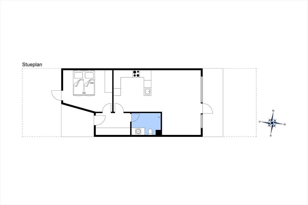 Ferieboligen er et gennemgående lyst og dejligt hus at opholde sig i – det mærker du med det samme, du træder ind ad døren. Vi starter i entréen i stueetagen. Her finder du også det første soveværelse med dobbeltseng, plads til to personer og god opbevaringsplads. Soveværelset ligger ved siden af et badeværelse, som – ligesom resten af huset – er lyst og funktionelt. I entréen finder I også vaskemaskine og tørretumbler, så det praktiske er på plads.