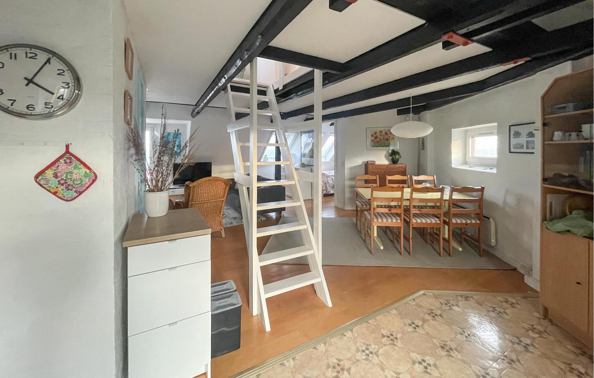 Den hyggelige lejlighed med mange interessante detaljer og synlige loftsbjælker er velegnet til en afslappende ferie på en central beliggenhed ved Ballen Havn. Her ved man altid, hvad der sker i havnen, fordi man har en vidunderlig havudsigt, hvilket er en sand fornøjelse på alle tidspunkter af dagen, hvad enten det er morgenmad om morgenen eller kaffe og kage om eftermiddagen efter en gåtur eller en cykeltur.