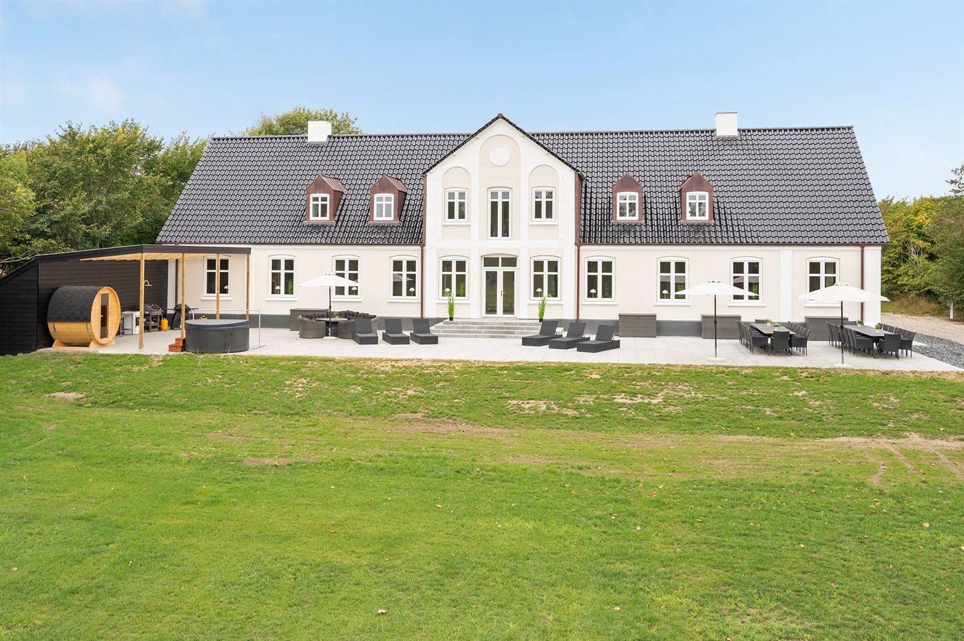 Denne tidligere landejendom egner sig til 32 personer samt 2 børn op til 3 år. Ferieboligen er på 640 m², er i 2 plan, og er bygget i 1880. I 2022 gennemgik ferieboligen en renovering. Det er tilladt at medbringe 3 husdyr. Der er jordvarme. Der er gulvvarme i alle klinkegulve. Ferieboligen har vaskemaskine. Tørretumbler. Frysekapacitet på 200 liter. Til de små er der 2 stk. barnestole.