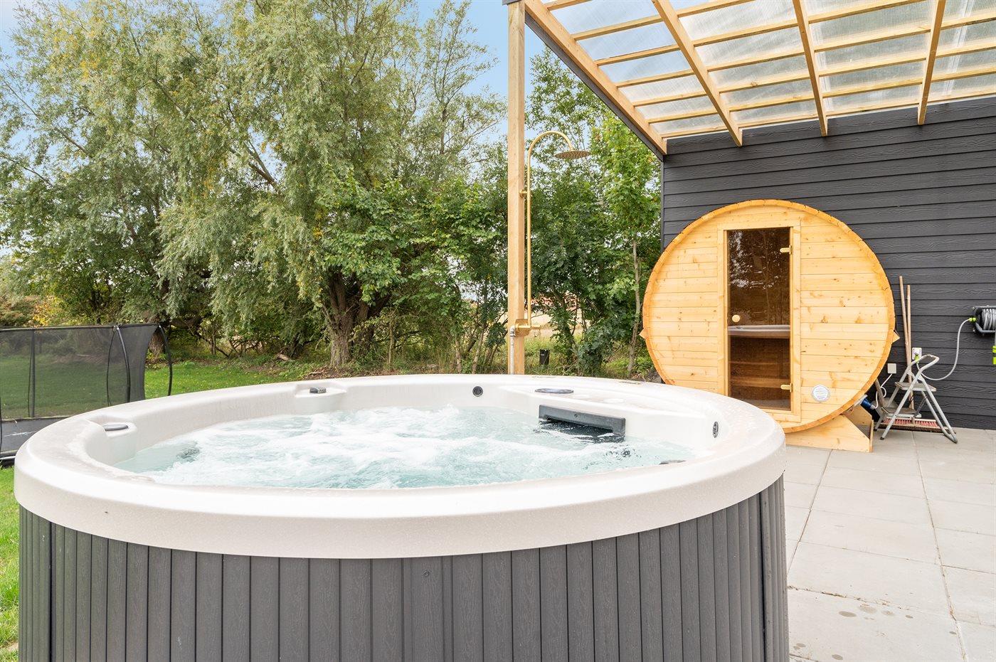 Der er mulighed for afslapning i udendørs standvandsspa til 8 personer.